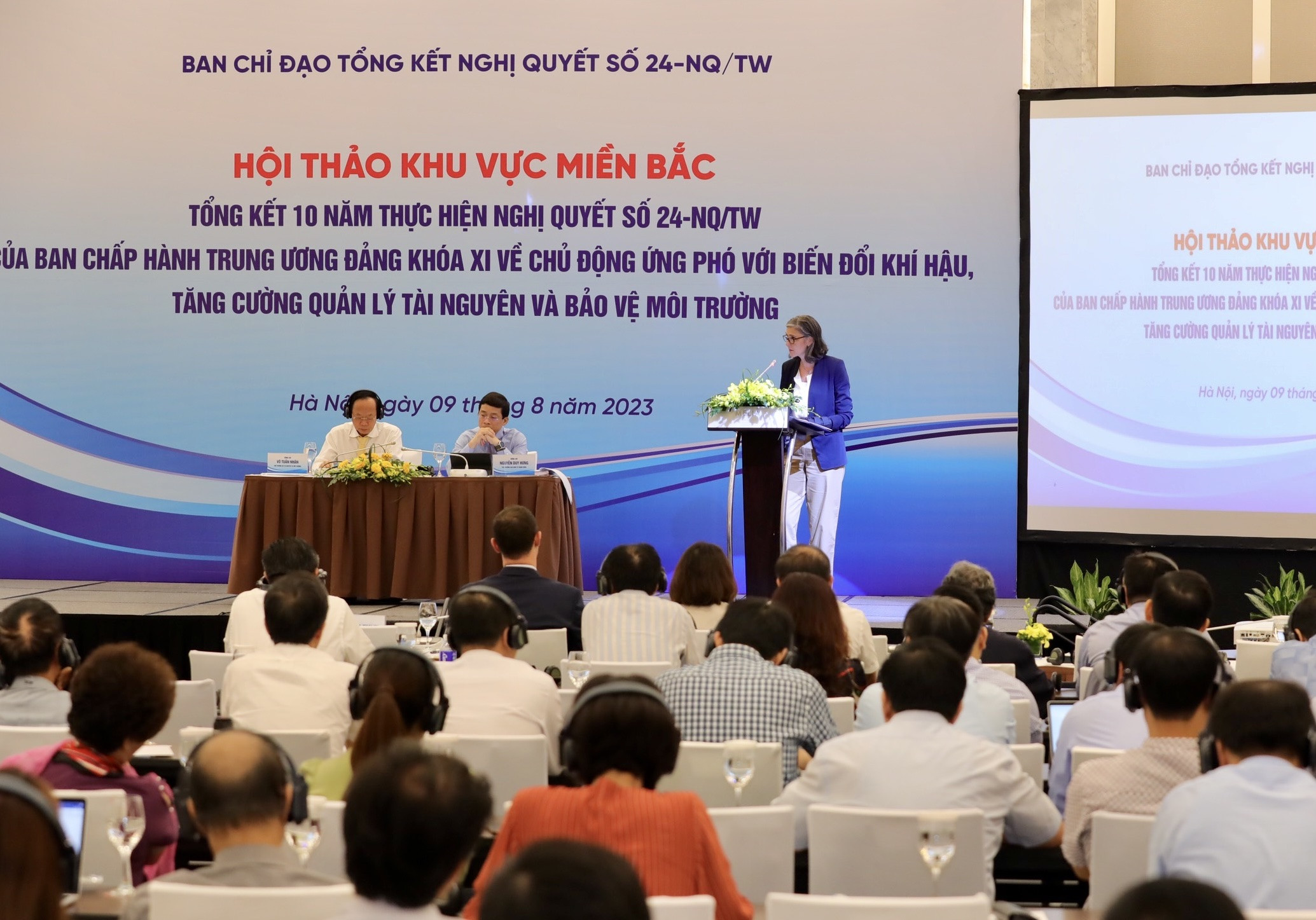Triển khai nhiệm vụ được giao, ngày 9/8/2023, Ban Chỉ đạo tổng kết Nghị quyết số 24-NQ/TW của Ban Chấp hành Trung ương Đảng khóa XI về chủ động ứng phó với biến đổi khí hậu, tăng cường quản lý tài nguyên và bảo vệ môi trường phối hợp với Chương trình Phát triển Liên Hợp Quốc (UNDP) và Viện Hanns Seidel Foundation (HSF) tổ chức Hội thảo tham vấn khu vực miền Bắc về Báo cáo tổng kết 10 năm thực hiện Nghị quyết số 24-NQ/TW. Hội thảo nhằm tham vấn ý kiến để hoàn thiện Báo cáo tổng kết và tập trung thảo luận kết quả thực hiện Nghị quyết số 24-NQ/TW đồng thời đề xuất quan điểm, mục tiêu, giải pháp trong thời gian tới.