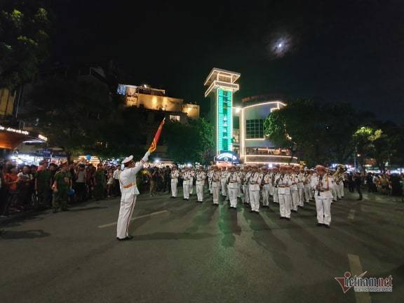 Trước đó, vào tối 6/10, đoàn Nghi lễ Công an nhân dân đã tổ chức buổi tổng duyệt tại hồ Hoàn Kiếm. Đại tướng Tô Lâm, Bộ trưởng Công an đã trực tiếp tham dự chương trình tổng duyệt.