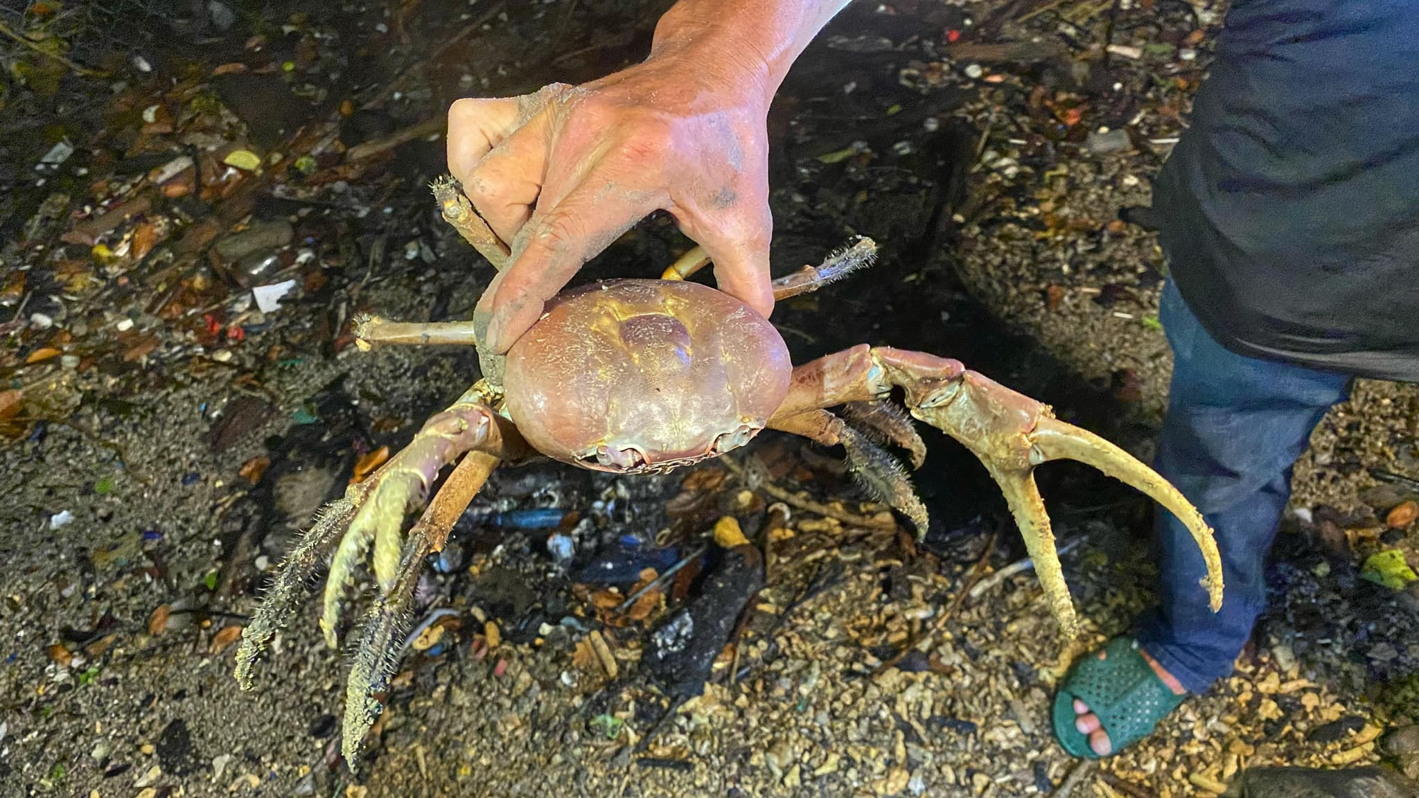 Ngoài xem rùa đẻ, thả rùa con về biển, Thư cùng các du khách khác còn được trải nghiệm đi rừng, khám phá các loài sinh vật đêm như cua xe tăng. Đây là loài cua cạn lớn nhất Việt Nam và gần như chỉ được tìm thấy ở Côn Đảo. Cua xe tăng có kích thước lớn nhưng lành tính, du khách có thể cầm và quan sát chúng ở cự ly gần.