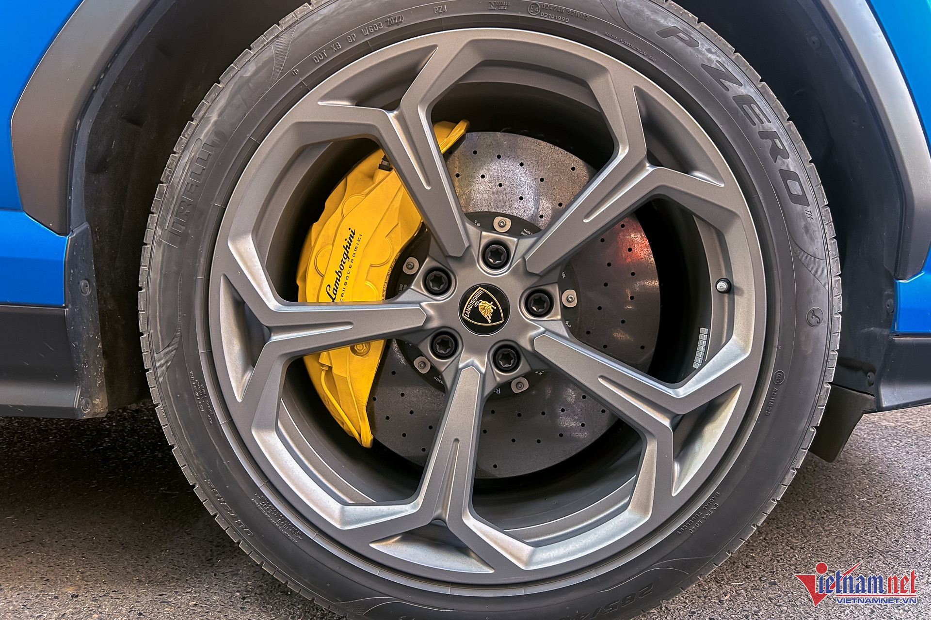 Chiếc Lamborghini Urus màu xanh của đại gia Hà Nội trang bị một số “option” trị giá hàng trăm triệu, trong đó bao gồm hệ thống âm thanh cao cấp Bang & Olufsen 21 loa, bộ mâm 5 chấu dạng chữ Y sơn bạc kích thước 22 inch, hệ thống phanh ceramic-carbon kèm cùm phanh màu vàng nổi bật,… Một số chi tiết ở ngoại thất chỉ làm bằng vật liệu composite thay cho sợi carbon có giá đắt đỏ hơn.