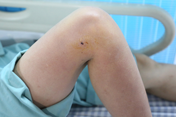Theo người nhà, trước nhập viện 3 ngày, bệnh nhân ra vườn hái quả bơ đã bị gà trống to (khoảng 4kg) lao tới mổ vào đùi phải. Vết thương bị đau, sưng nóng đỏ, ảnh hưởng đến việc đi lại nhưng bà chỉ ở nhà bôi thuốc. Một ngày sau, bà bị sốt gần 40 độ C, uống thuốc không đỡ nên đã đến khoa Cấp Cứu, Bệnh viện đa khoa tỉnh Phú Thọ.