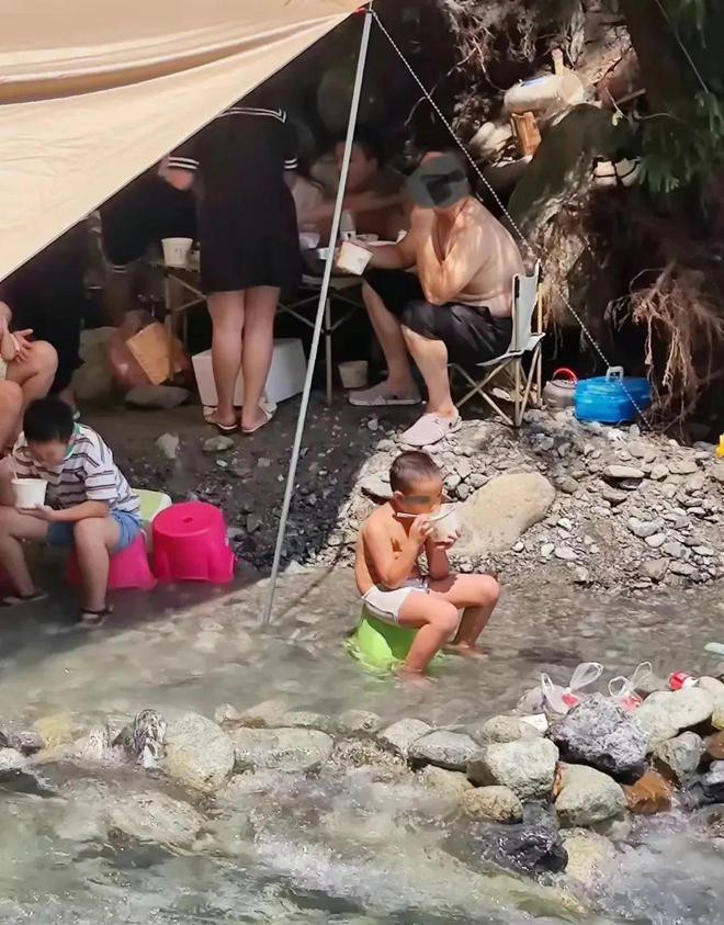Hình ảnh khách du lịch cắm trại, vui chơi dưới con sông trước khi thảm kịch xảy ra