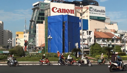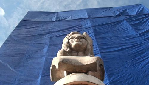 | Hình ảnh tượng đài bị rào chắn chuẩn bị di dời |
