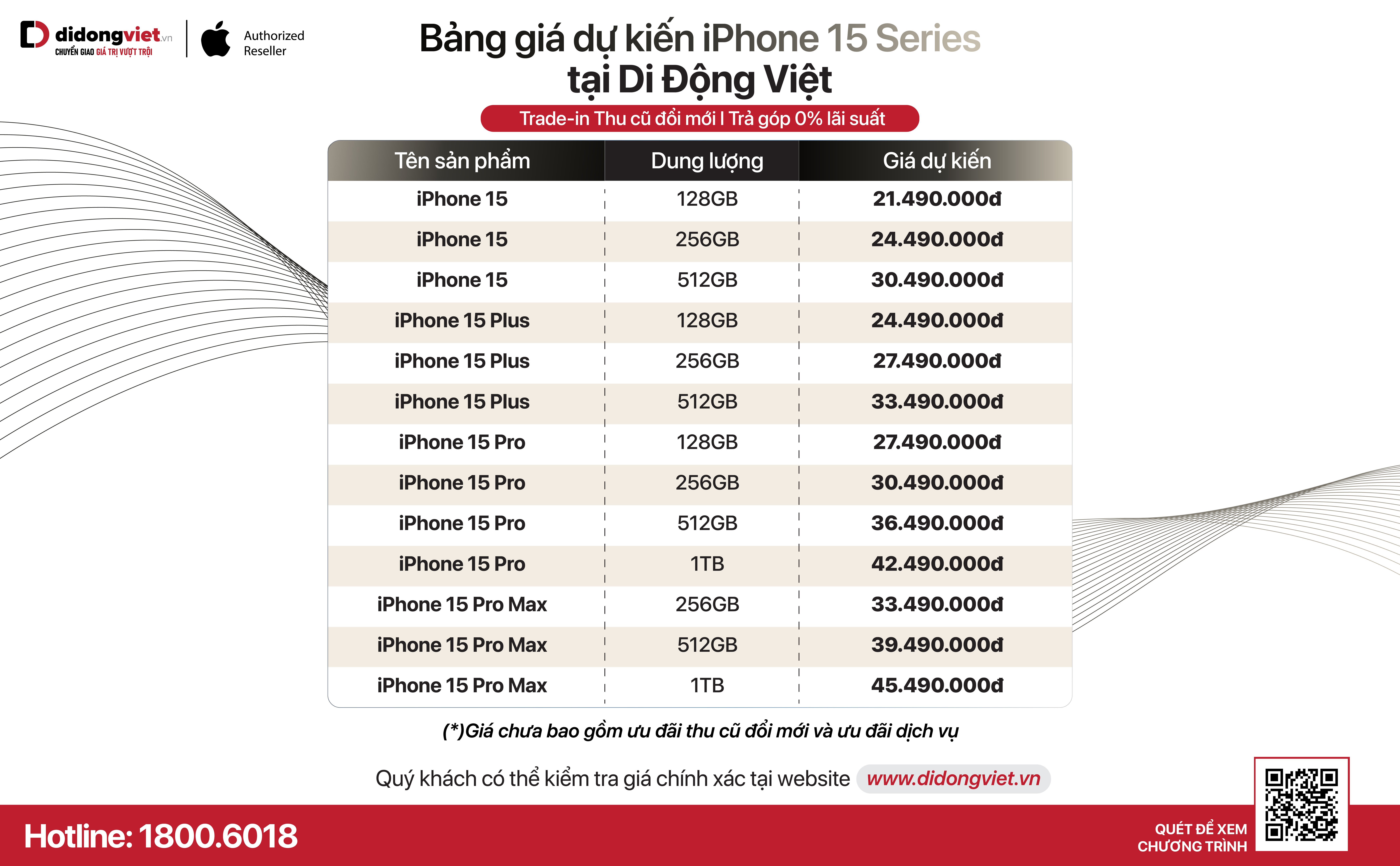 Để cập nhật thông tin sớm nhất về giá bán, quà tặng và ngày mở bán, người dùng có thể tham khảo thêm tại: https://didongviet.vn/iphone-15.html