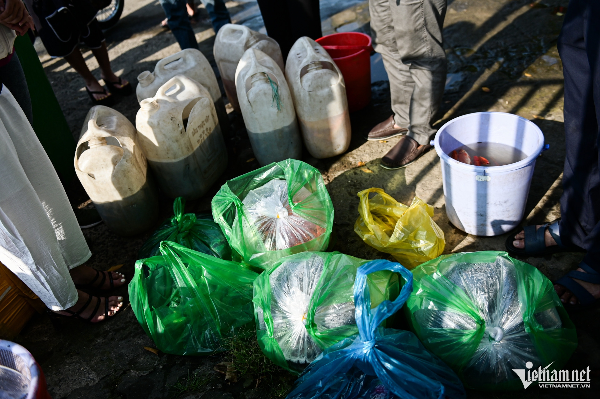 Bà Như Lan đi gần 10km từ quận 1 tới chùa Diệu Pháp. "Mọi năm tôi chỉ thả cá ở gần nhà nhưng năm nay tôi dự định tới chùa làm lễ nên phải dậy từ 4h đi chợ và cúng lễ sớm", bà Lan nói.