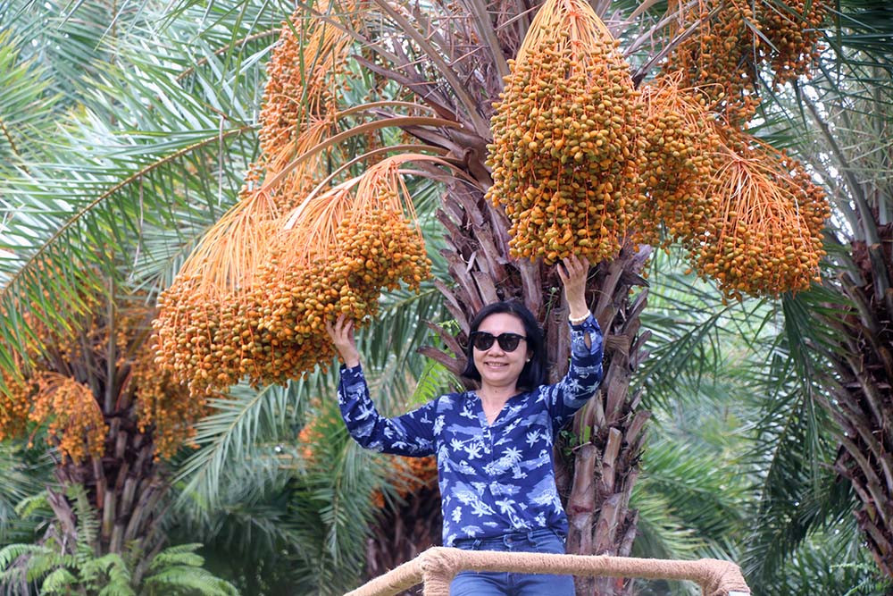 Trong ảnh: Du khách chụp ảnh check-in tại vườn chà là.