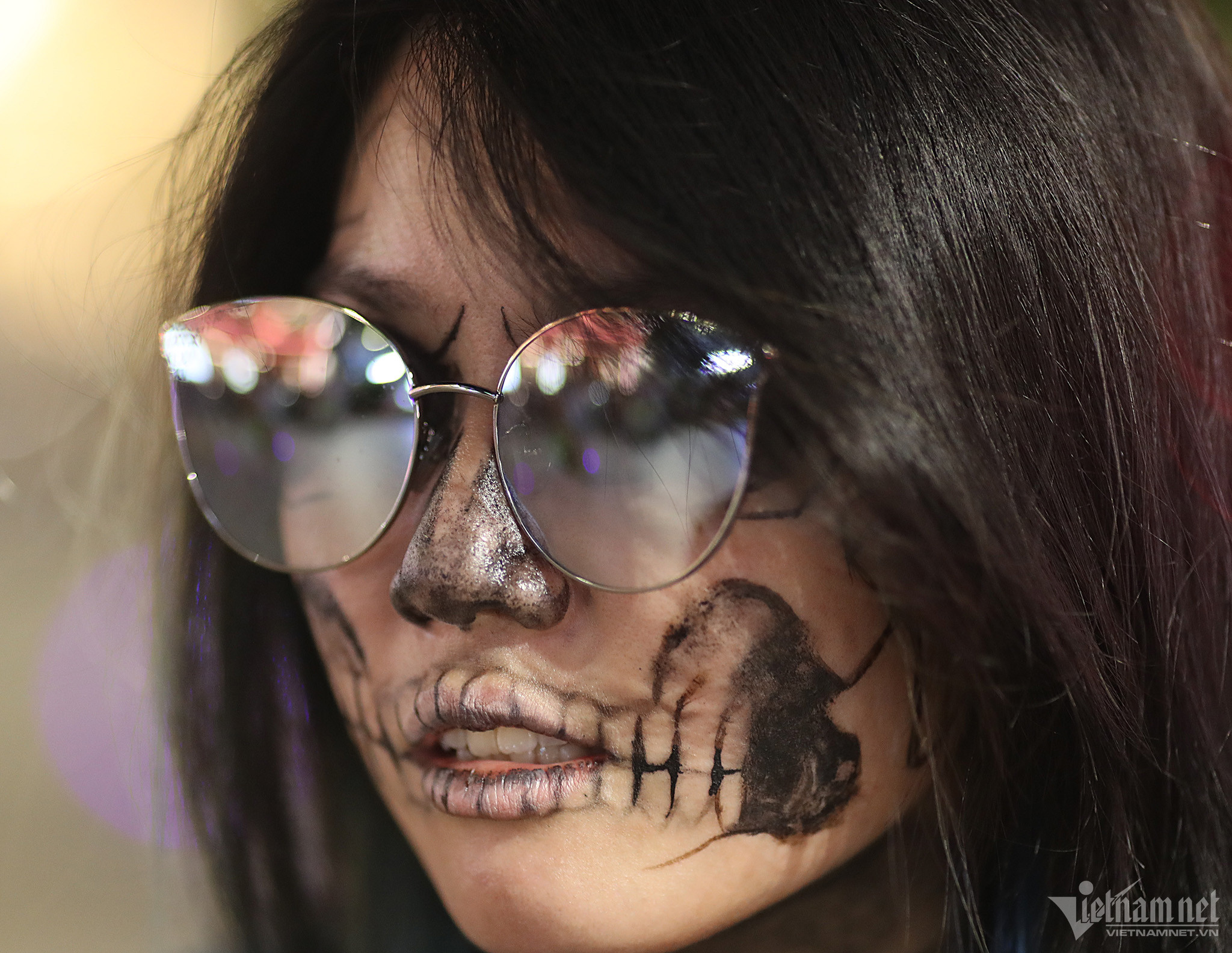 Ở các góc khác, nhiều bạn trẻ diện áo mũ kiểu kinh dị. Hình ảnh này thường thấy mỗi dịp cuối tháng 10 Dương lịch hàng năm.