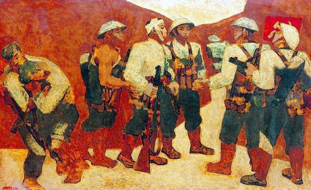 Cụ chậm rãi kể: “Khi nào rảnh tôi thường đến thăm Bảo tàng Mỹ Thuật, và lần nào cũng đến chiêm ngưỡng bức tranh tuyệt vời này. Ông Sáng chọn đề tài rất gai góc tưởng rất khô khan mà thể hiện rất ngọt, không lên gân, không hô khẩu hiệu. Các chiến sĩ Điện Biên họ hoạt động y như thế. Chỉ có 8 người lính và một lá cờ búa liềm mầu đỏ đính trên bờ chiến hào mà cảm nhận được sự khốc liệt của chiến tranh và quyết tâm quyết chiến, quyết thắng của cả một dân tộc".