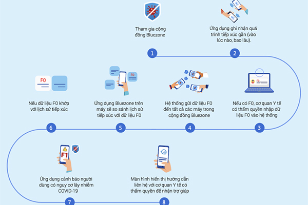 | Cách thức hoạt động của ứng dụng Bluezone. |