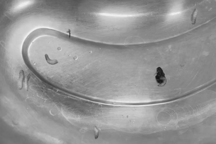 Bệnh nhân vào khám vì tai đau, chảy dịch và máu. Bác sĩ nội soi phát hiện nhiều dị vật di động đang lúc nhúc trong hòm mang nhĩ.