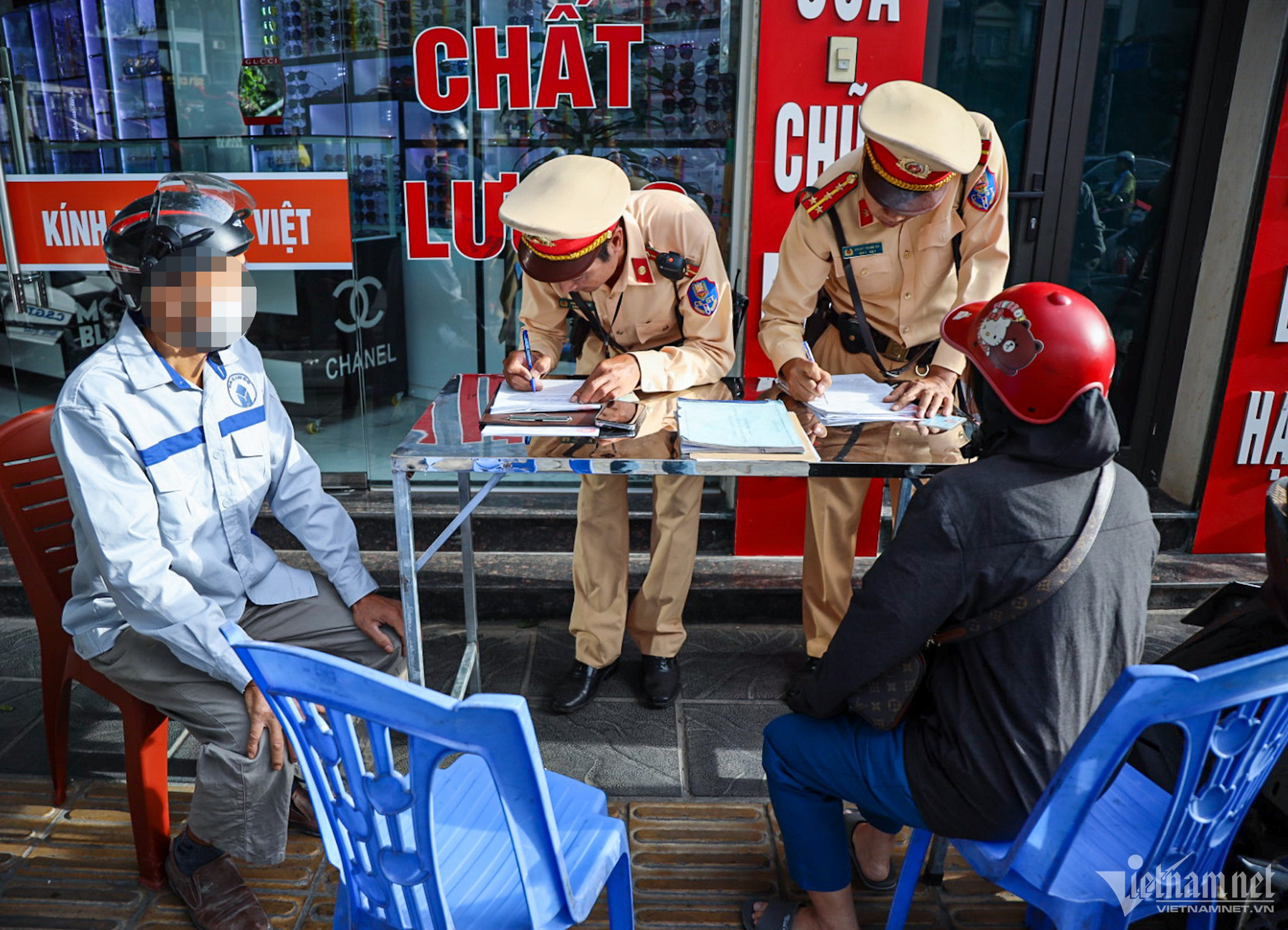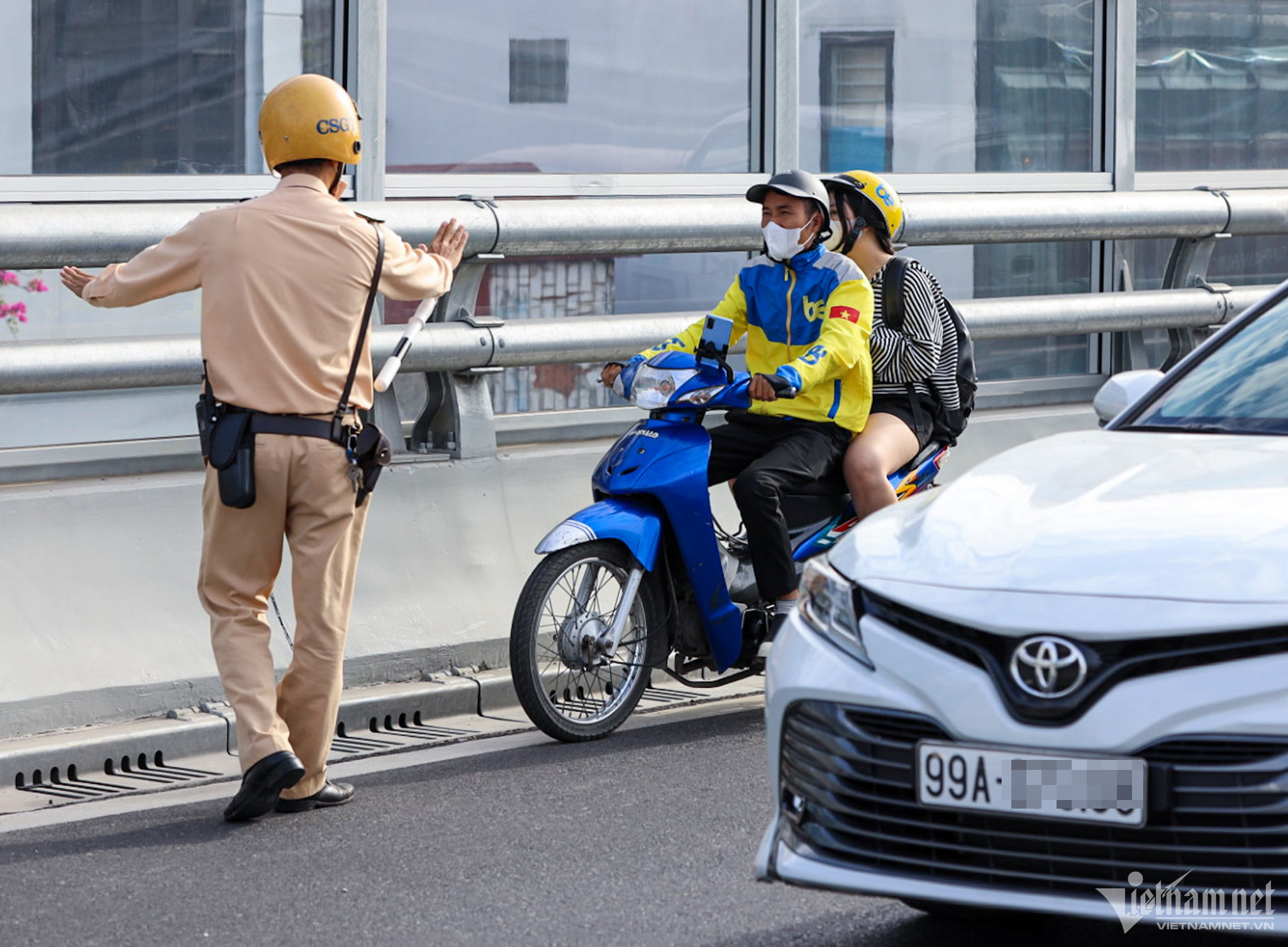 Cảnh sát xác định, nhiều người điều khiển xe máy đi thẳng từ cầu Vĩnh Tuy lên Vành đai 2 trên cao và xuống đường Trường Chinh tại nút giao Vành đai 2 - ngã tư Vọng nên đã lập chốt tại đây để "đón lõng" xử lý vi phạm.