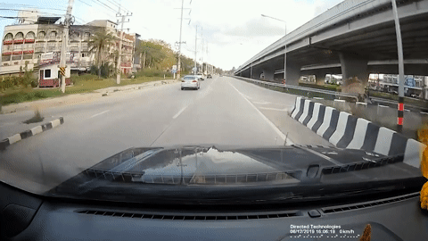 Nam thanh niên đi xe máy đâm thẳng vào xe rác ngã sõng soài trước mũi ô tô