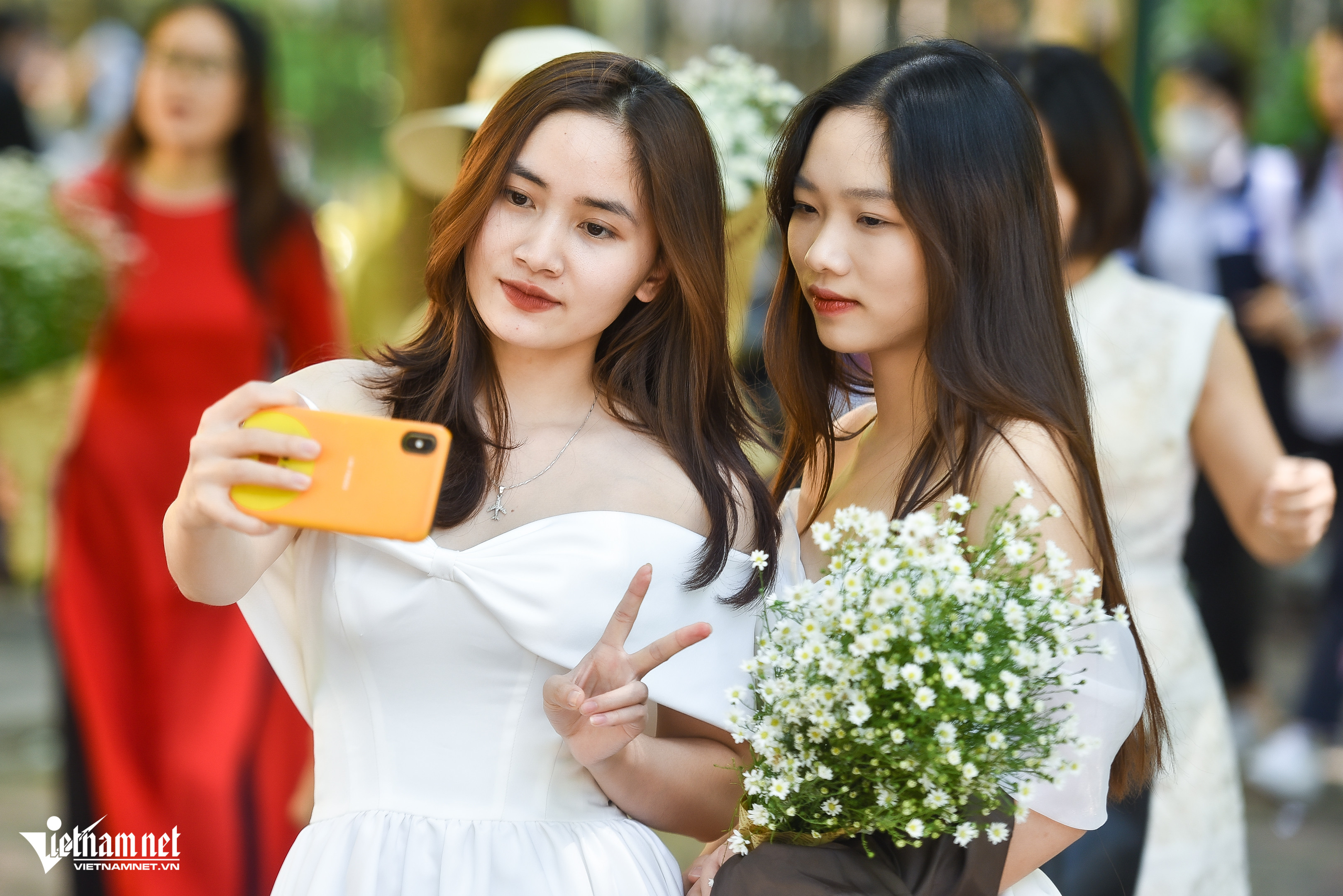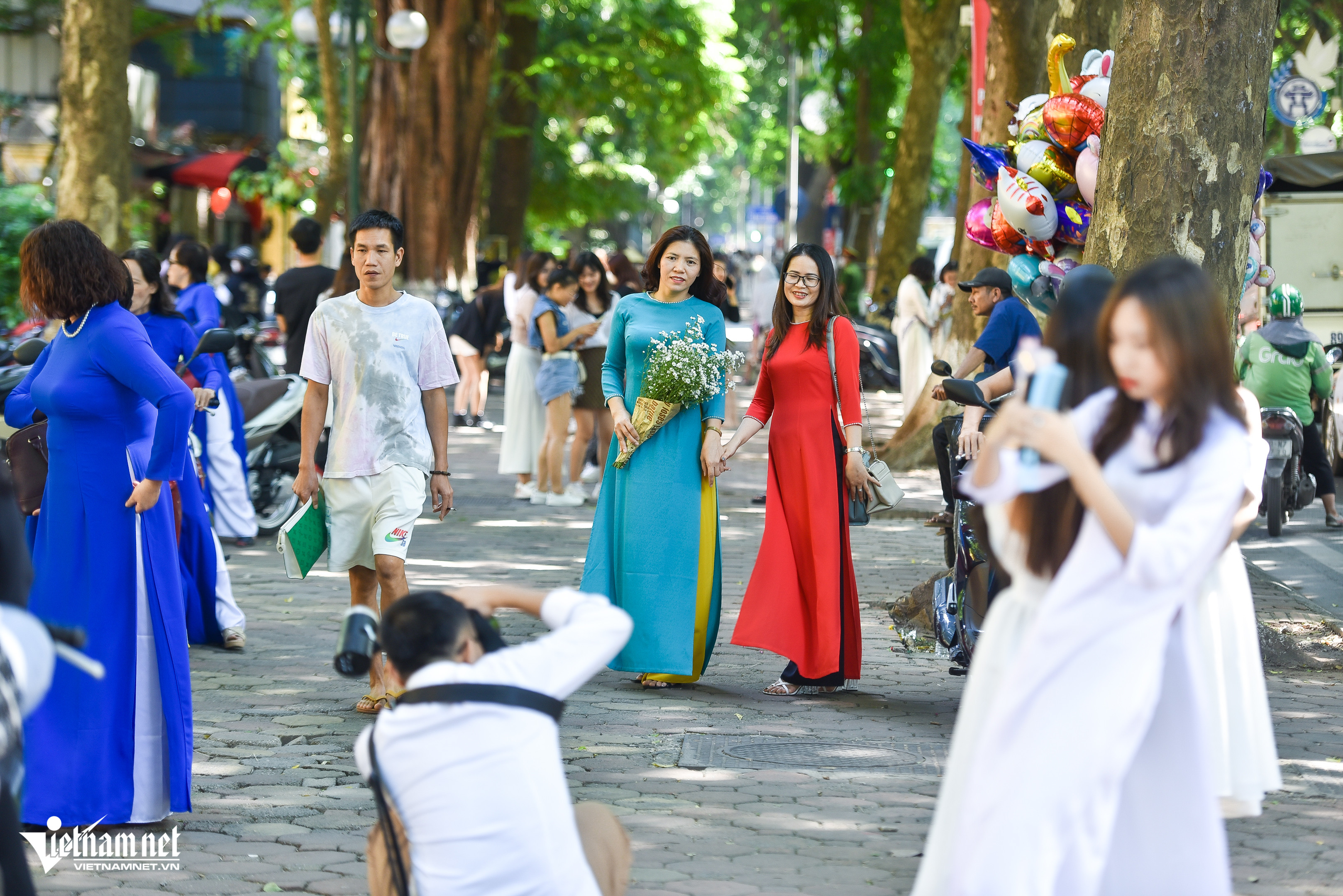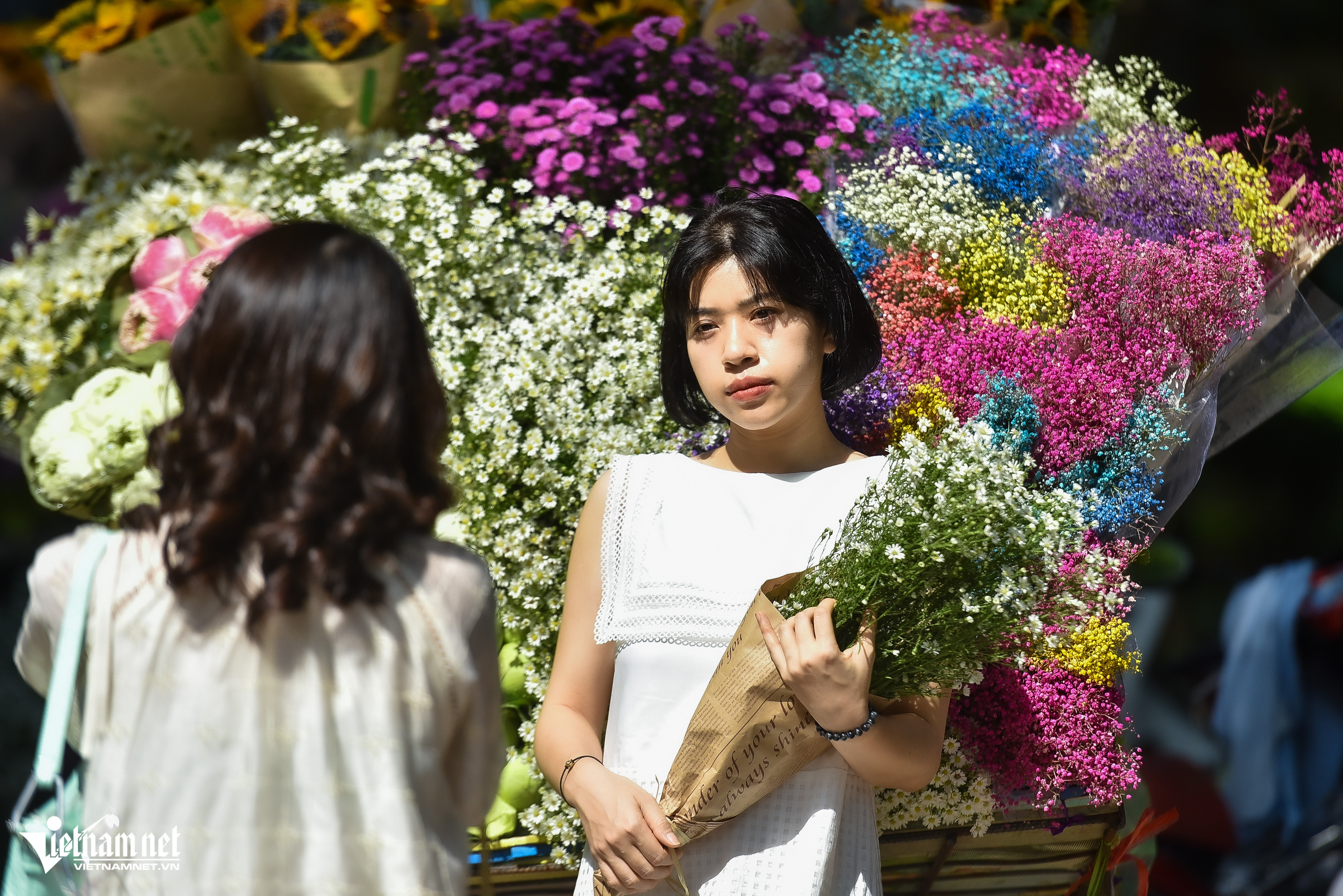 Góc đường Thanh Niên ven hồ Tây, giao Thụy Khuê là nơi hàng chục xe bán hoa hội tụ. Mỗi xe hoa có đủ các màu sắc của thạch thảo, cúc họa mi đầu mùa, violet, hướng dương... Sáng cuối tuần, rất đông du khách tìm tới đây, đứng xếp hàng, chờ đợi tới lượt chụp ảnh với gánh hàng hoa. Giá những bó hoa - đạo cụ chụp ảnh khá đắt, từ 70.000 - 100.000 đồng/bó nhỏ.