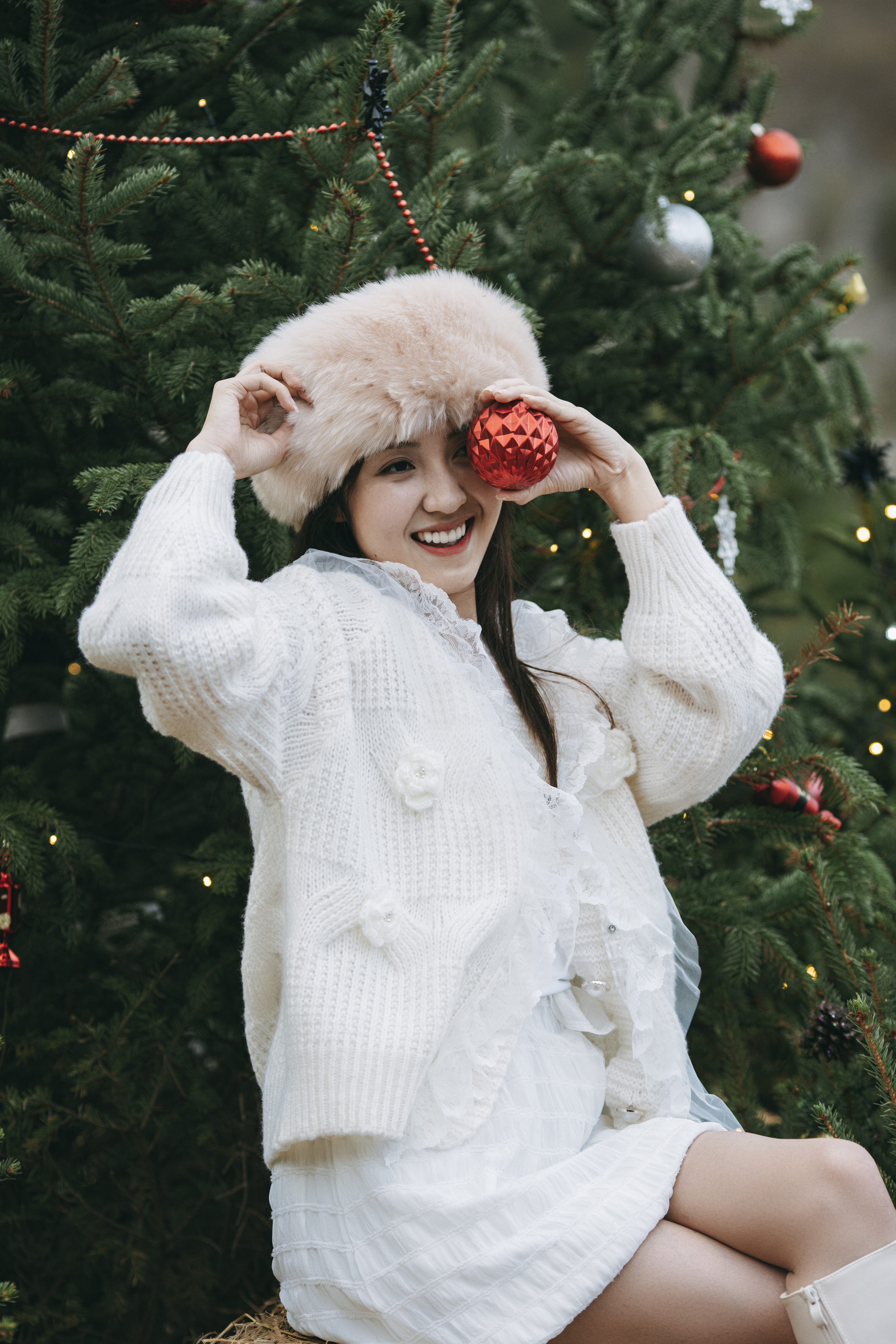 Mỗi cây thông đều được tô điểm bằng các họa tiết trang trí như quả chuông, sao bạc, dây nơ, ruy băng,... tạo khung cảnh lung linh màu sắc, thu hút ánh nhìn của du khách. Chủ vườn còn bố trí nhiều tiểu cảnh như các cuộn rơm, căn lều, ghế gỗ,... xen kẽ giữa những hàng thông để du khách có thể thoải mái tạo dáng, chụp hình.