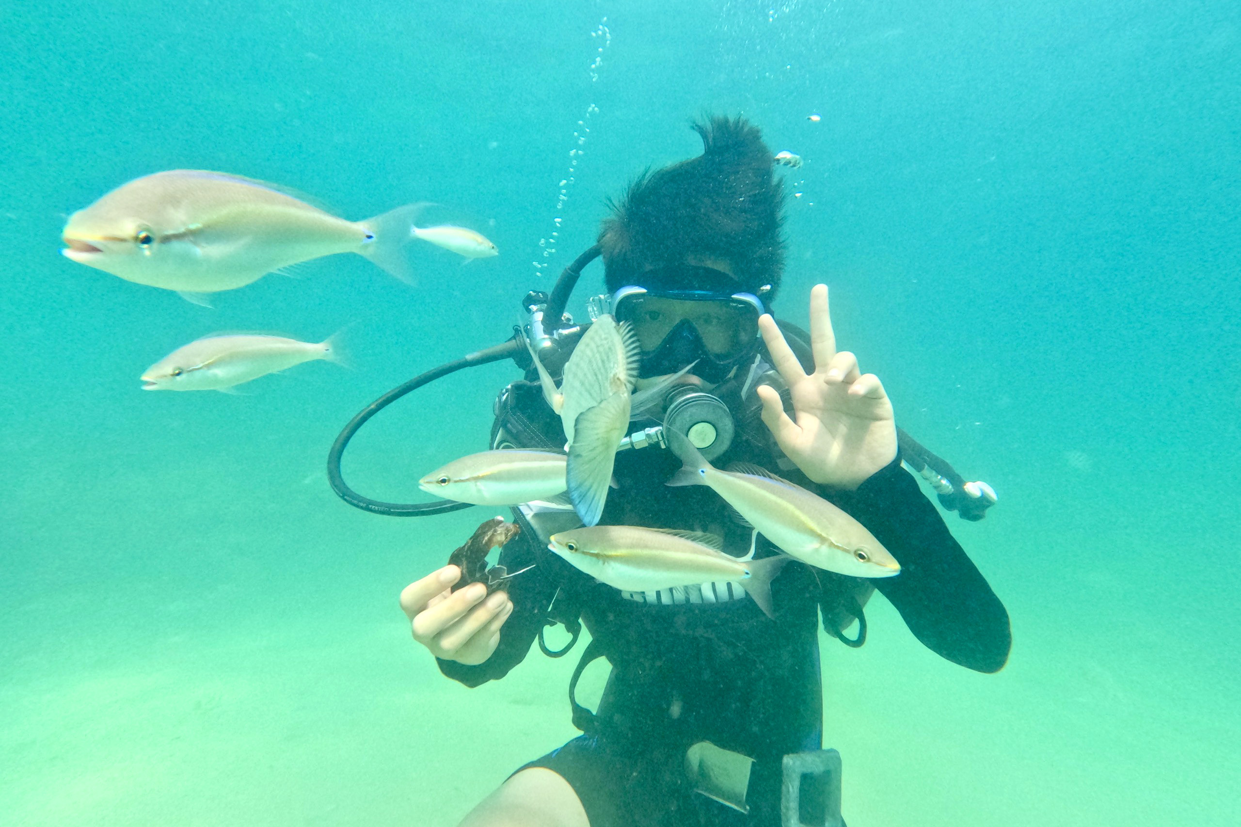 Du khách có thể trải nghiệm lặn biển ngắm san hô dưới sự hướng dẫn của những hướng dẫn viên chuyên nghiệp, giàu kinh nghiệm. Du khách còn được tới khu vực có nhiều loài cá, cầm trên tay thức ăn, chờ đàn cá ùa tới đớp mồi.