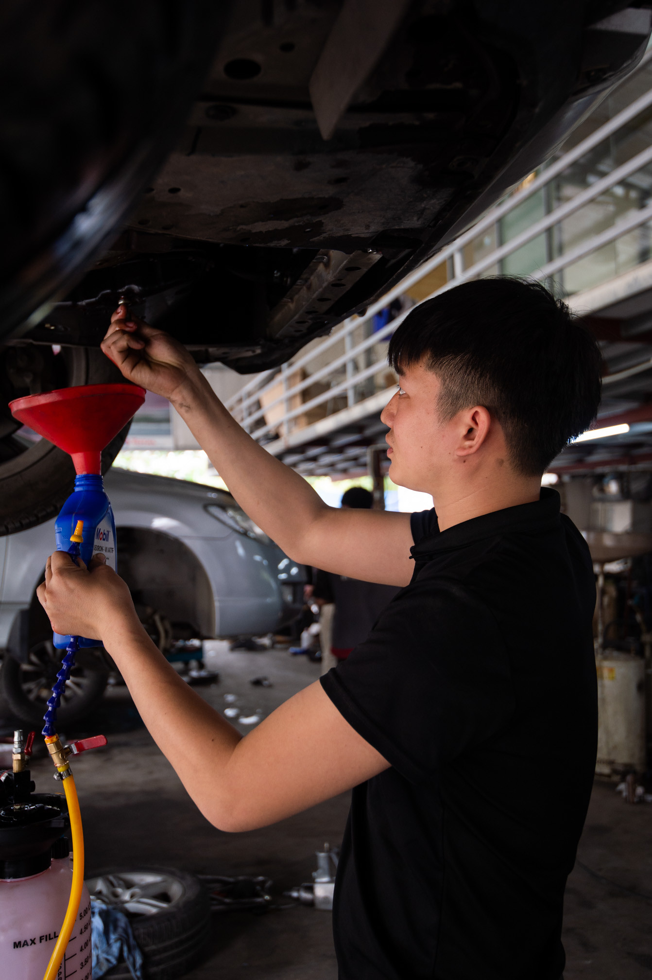 Sau khi sửa chữa xong, nhân viên xưởng khởi động máy kiểm tra hệ thống để giao trả xe cho khách.