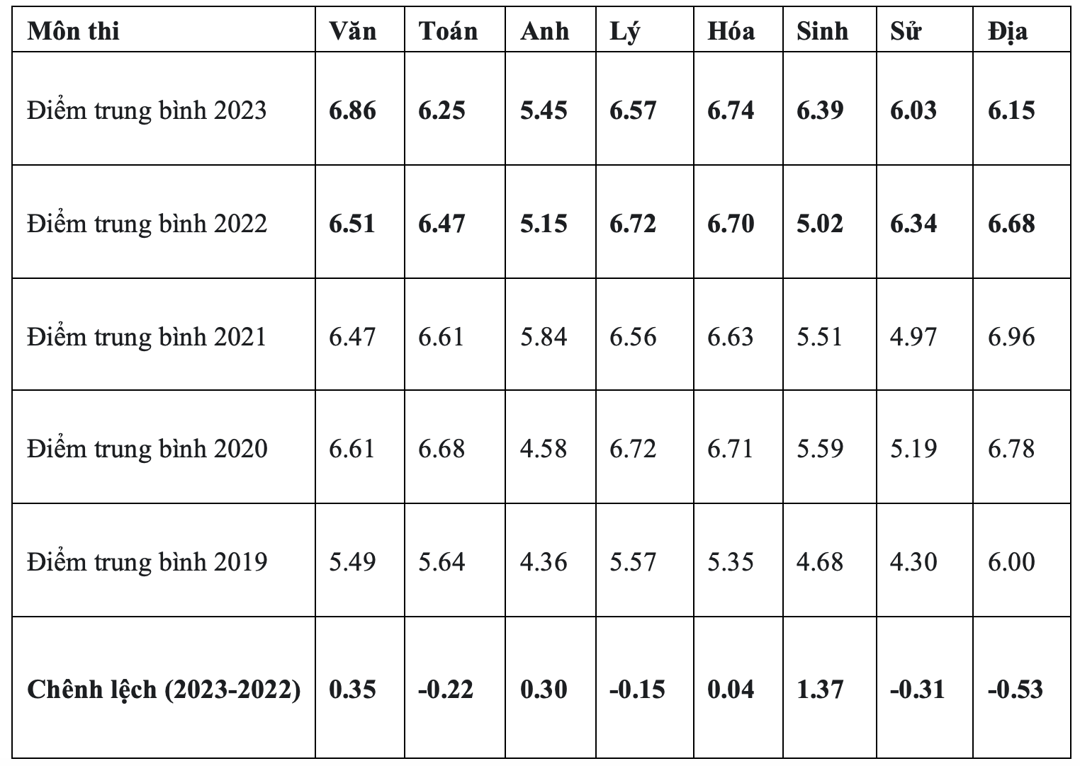 Tương tự, Thạc sĩ Trần Nam - Phó Giám đốc Trung tâm Tư vấn Tuyển sinh và Hỗ trợ người học, Trường ĐH Khoa học Xã hội và Nhân văn (ĐH Quốc gia TP.HCM), nhìn nhận điểm thi các môn quan trọng trong xét tuyển đại học như: Ngữ văn, Toán, tiếng Anh, Lịch sử, Địa lý, Vật lý, Hóa học, Sinh học nhìn chung giữ ổn định so với năm 2022 khiến cho điểm chuẩn của các tổ hợp xét tuyển truyền thống không tăng giảm đột biến, chỉ dao động ở mức 0,5 đến 1,0 điểm.
