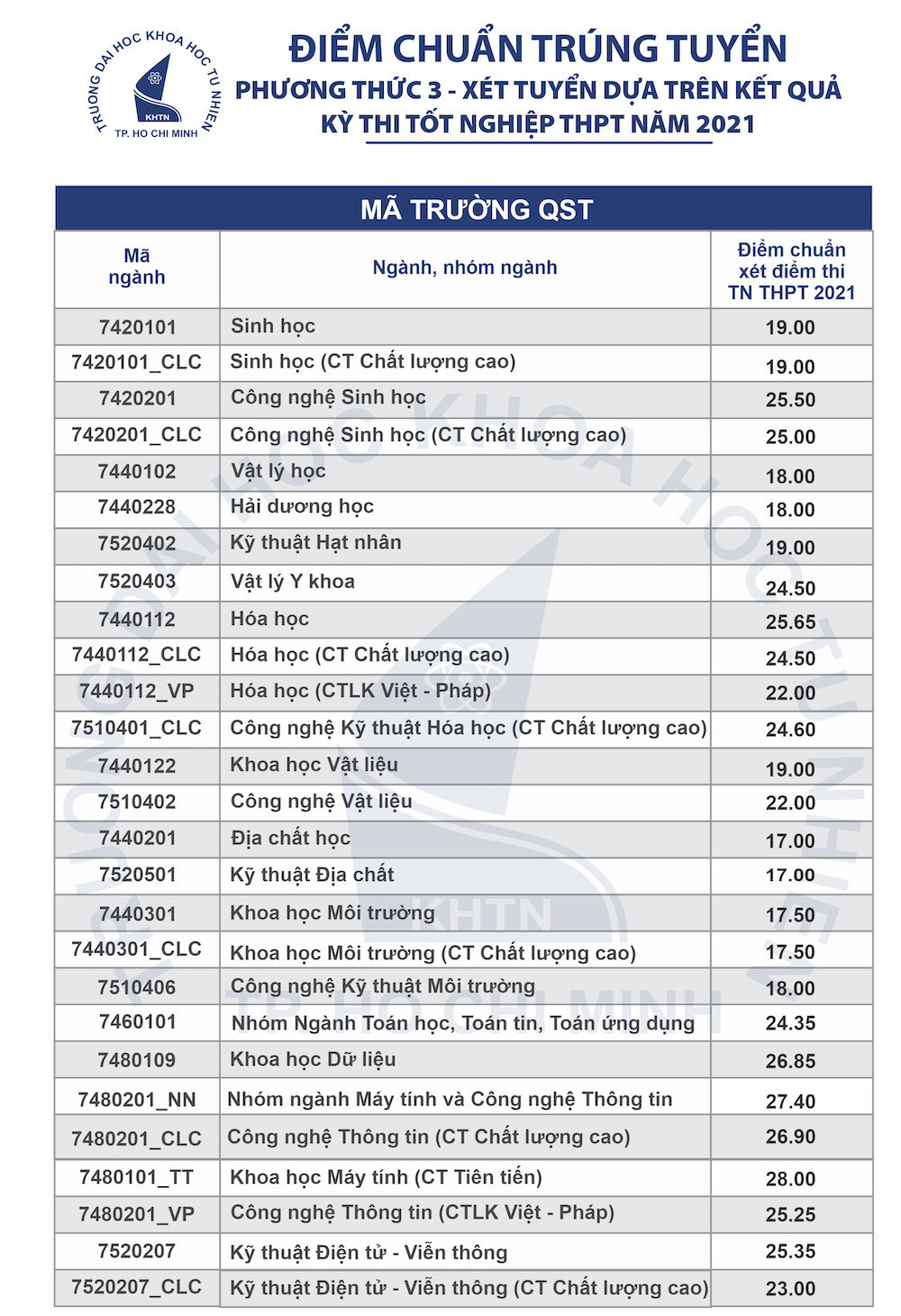 Trường ĐH Khoa học Tự nhiên TP.HCM vừa công bố điểm sàn xét tuyển đại học 2021. Trường còn 2.318 thí sinh xét tuyển từ phương thức thi tốt nghiệp THPT.