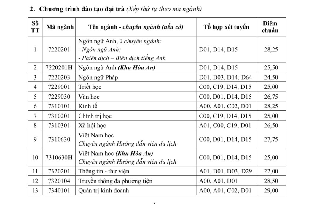 Trong đó, các ngành có điểm trúng tuyển 29,25 gồm: Tài chính – Ngân hàng; Kinh doanh Quốc tế, Marketing, Công nghệ thông tin.