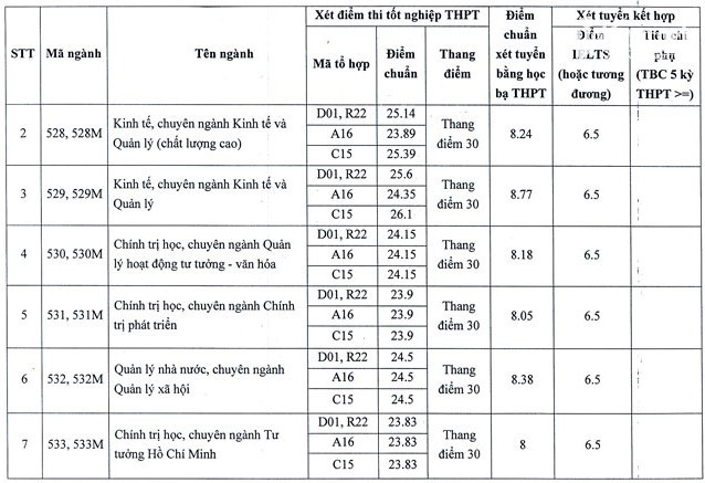 Dưới đây là điểm chuẩn các ngành của Học viện Báo chí và Tuyên truyền năm 2022 theo các phương thức: