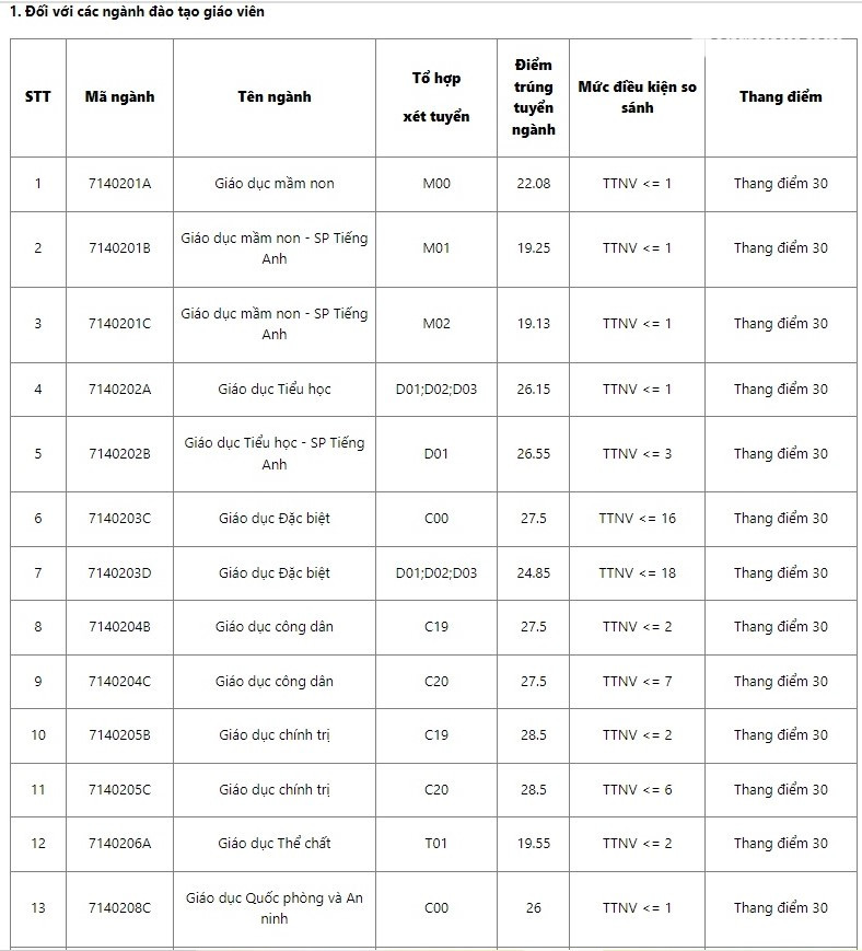 Dưới đây là điểm chuẩn các ngành của Trường ĐH Sư phạm Hà Nội năm 2022: