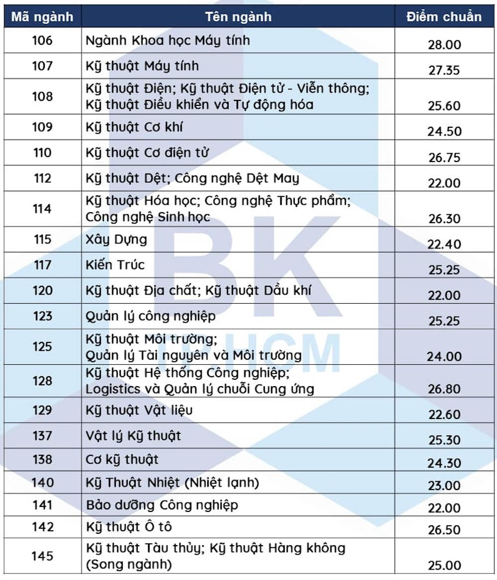 Tham khảo điểm chuẩn Trường ĐH Bách khoa TP.HCM năm 2021