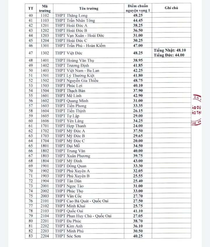 TOP 15 TRƯỜNG CÓ ĐIỂM CHUẨN LỚP 10 CAO NHẤT HÀ NỘI