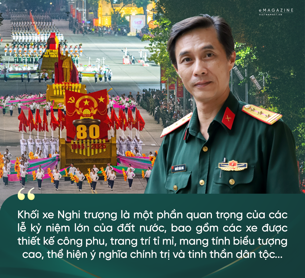 Một ngày giữa tháng 8, trong căn phòng làm việc nhỏ ở tầng 3 tại phố Lý Nam Đế (Hà Nội), Thượng tá, họa sĩ Nguyễn Tuấn Long (Trợ lý mỹ thuật toàn quân, Cục Tuyên huấn, Tổng cục Chính trị QĐND Việt Nam) bận rộn với những cuộc gọi trao đổi chuyên môn với đơn vị thi công về tình hình tiến độ của toàn khối xe Nghi trượng.
