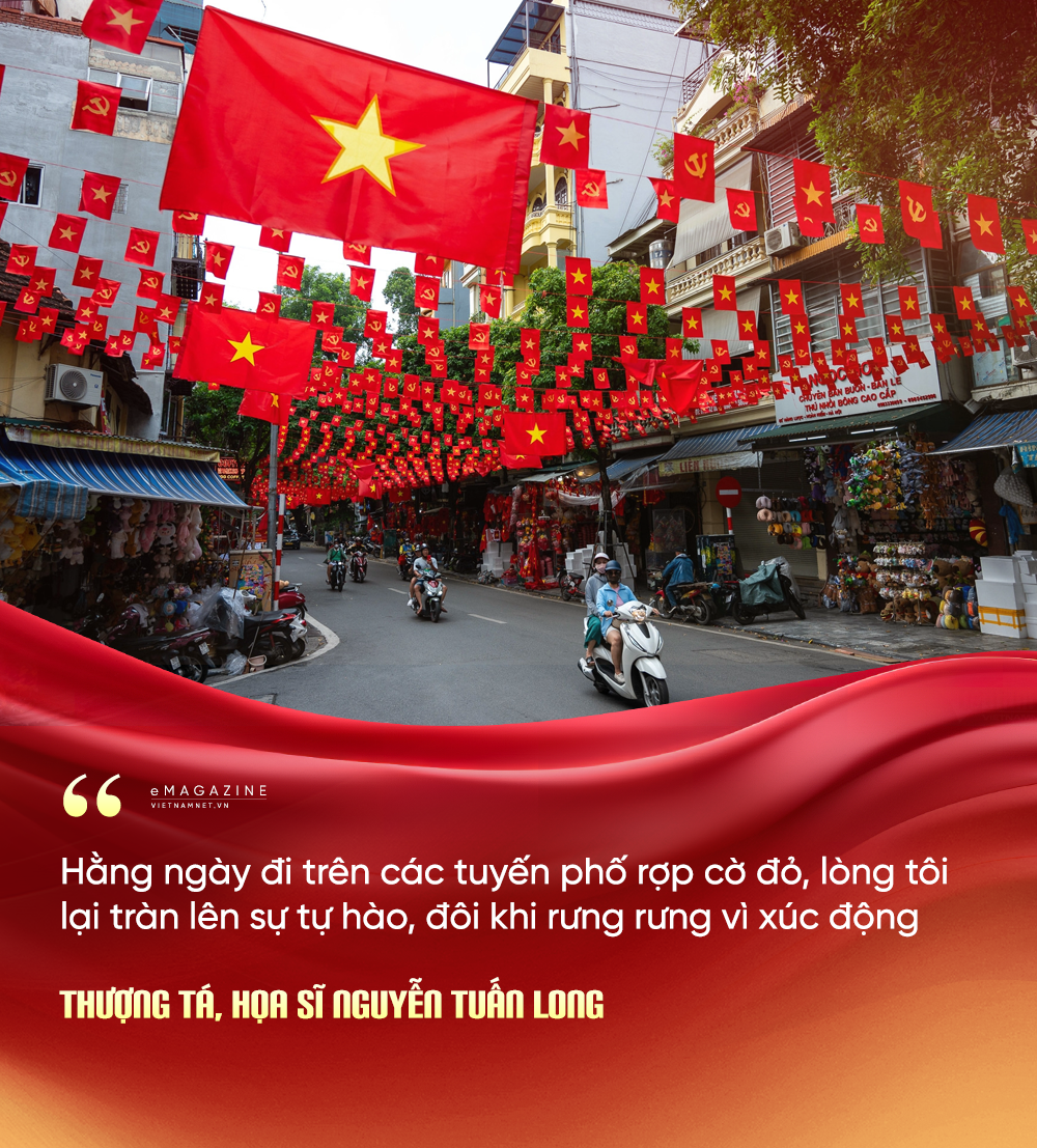 Ngay từ khi được giao trọng trách, “với tinh thần của một người lính, họa sĩ và đặc biệt là với tinh thần con dân nước Việt”, Thượng tá Nguyễn Tuấn Long xác định đây là nhiệm vụ đặc biệt quan trọng, với tâm thế luôn phải đặt nhiệm vụ lên hàng đầu. Niềm tự hào về đất nước, sự tri ân với lịch sử là chất xúc tác giúp ông hiện lên những ý tưởng. “Hằng ngày đi trên các tuyến phố rợp cờ đỏ, lòng tôi lại tràn lên sự tự hào, đôi khi rưng rưng vì xúc động”, ông giãi bày.