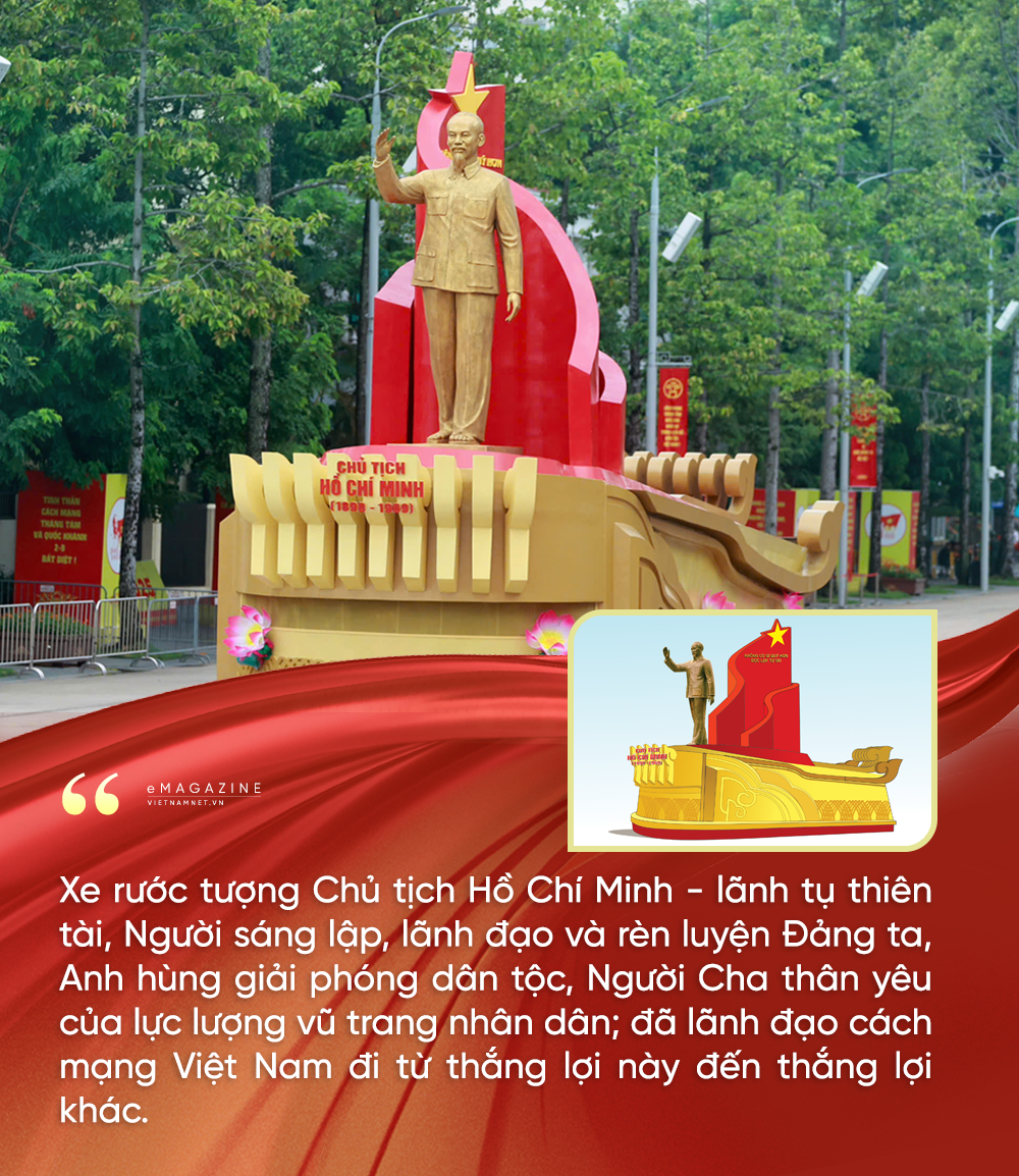 Với xe rước tượng chân dung Chủ tịch Hồ Chí Minh, ông Long xúc động chia sẻ, so với các lễ kỷ niệm trước, hình tượng của Bác sẽ được khắc họa rất đặc biệt.