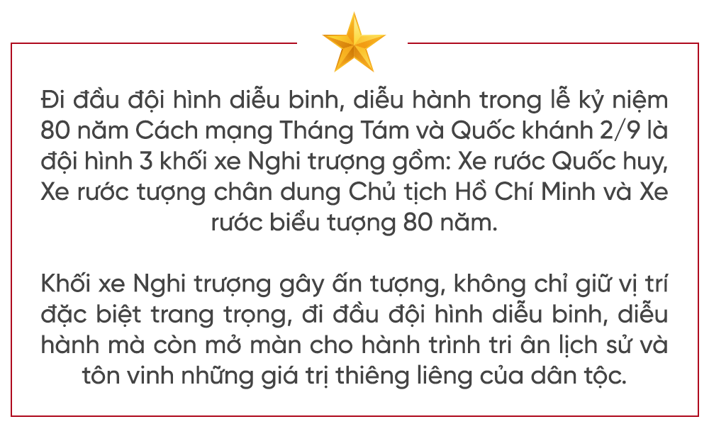 Với 80 năm Cách mạng Tháng Tám và Quốc khánh 2/9, các khối xe thiết kế phải đảm bảo tương xứng với tầm vóc, ý nghĩa của lễ kỷ niệm và không gian Quảng trường Ba Đình, Lăng Chủ tịch Hồ Chí Minh.