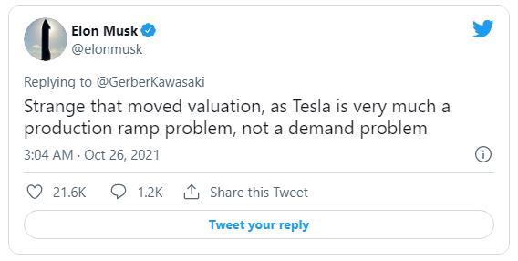 Đây không phải là lần đầu tiên Musk đặt câu hỏi về phản ứng của thị trường. Vào ngày 25/10, Musk đã viết rằng sự thay đổi trong định giá của Tesla là "kỳ lạ". Musk nói rằng công ty phải đối mặt với vấn đề sản xuất chứ không phải nhu cầu.