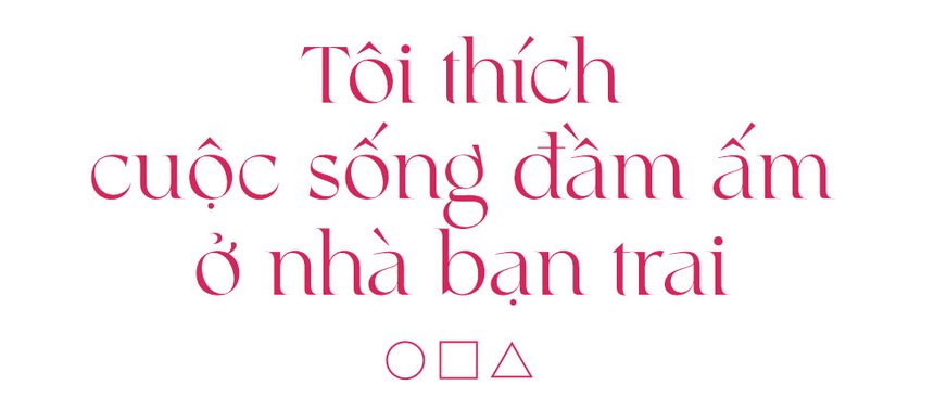 - Tôi thích sống chung với gia đình bạn trai. Từ xưa, cuộc sống của tôi luôn đơn chiếc vì lúc nào cũng chỉ có hai mẹ con. Sống bên gia đình bạn trai, có sự đủ đầy, tôi cảm thấy ấm áp. Gia đình bạn bao giờ cũng ăn trưa và tối cùng với nhau. Đối với người đầy đủ điều đó không quan trọng. Còn tôi rất trân trọng và hạnh phúc với thời gian quây quần bên người thân.