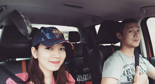 | Diễm Quỳnh cùng chồng đạp xe ngày cuối tuần. |