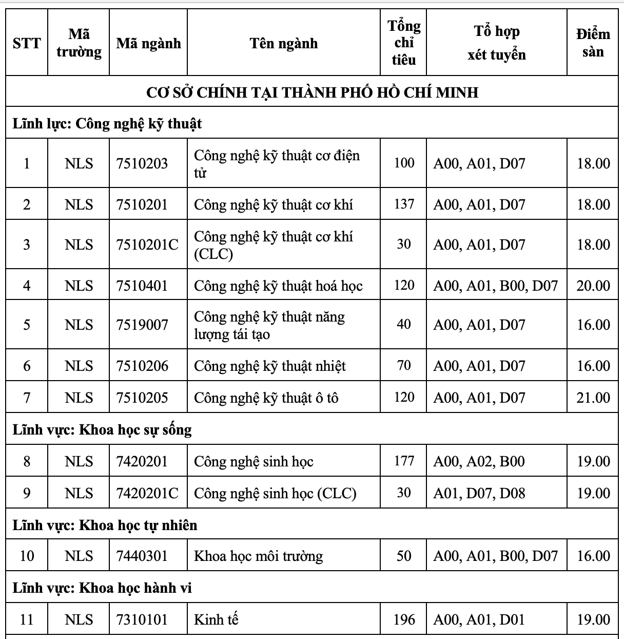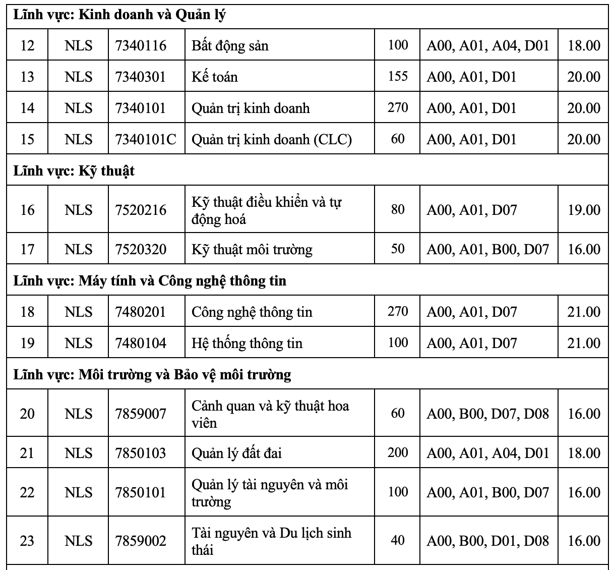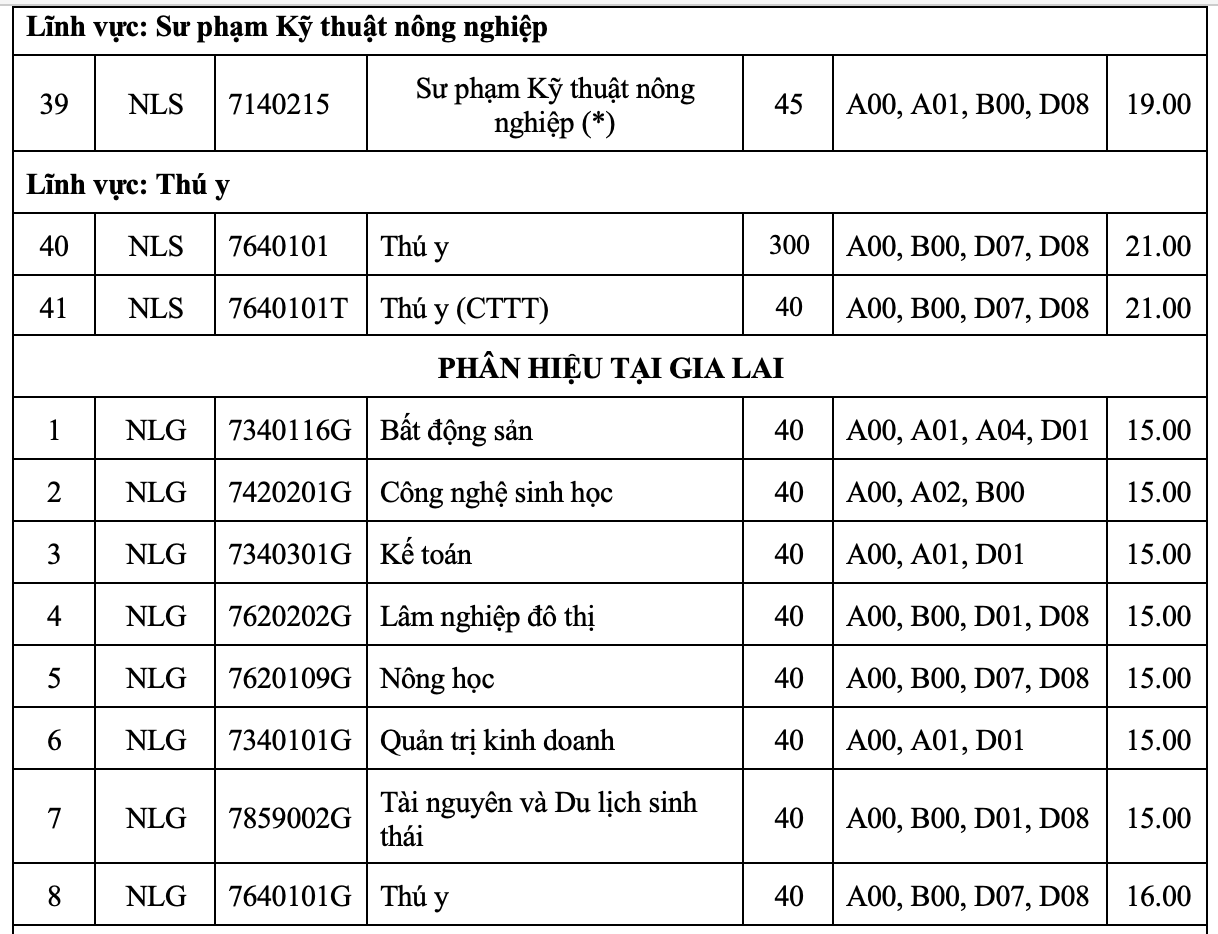 Điểm sàn Trường ĐH Nông lâm TP.HCM cụ thể như sau: