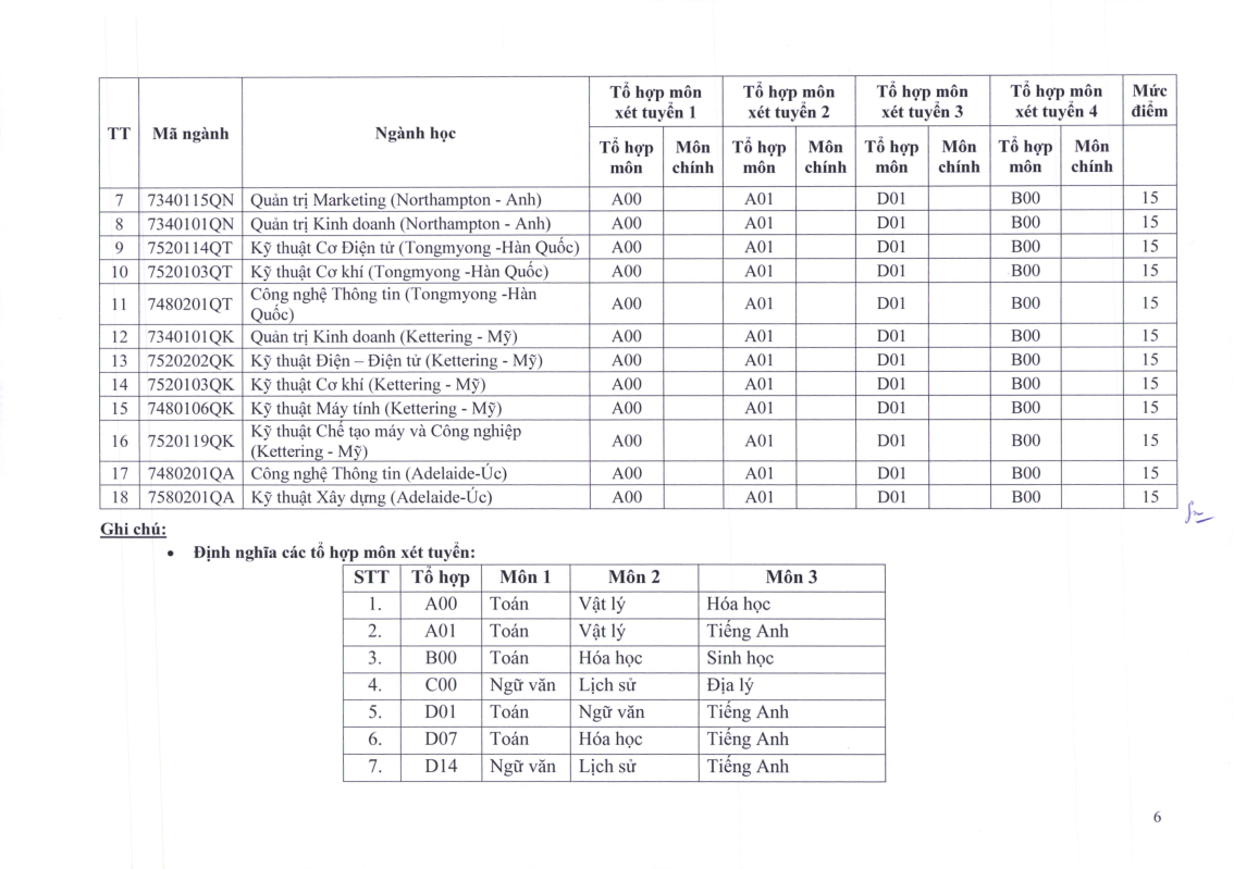 Theo đó, phương thức tuyển thẳng thí sinh đạt giải 1, 2 và 3 cấp quốc gia theo môn, cuộc thi khoa học kỹ thuật, điểm chuẩn các ngành ở mức 18.