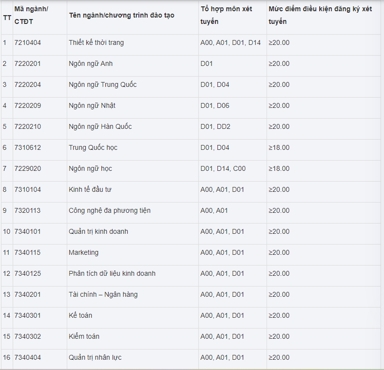 - Phương thức 4: Xét tuyển dựa trên kết quả học tập ở bậc học THPT (khoảng 15% tổng chỉ tiêu).