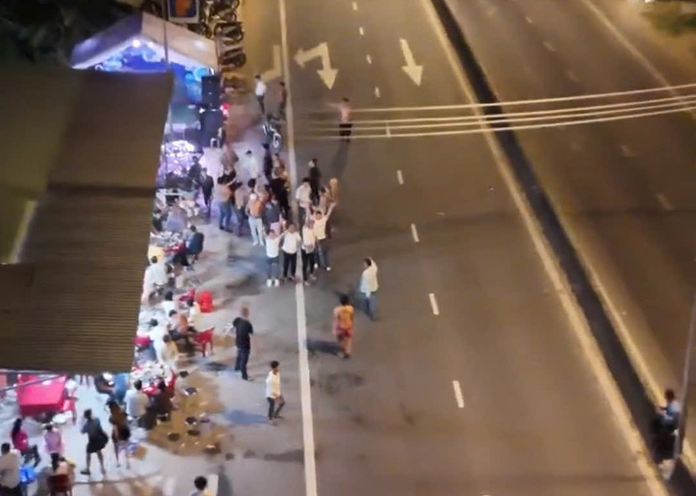 Khi pháo hoa nổ, khoảng 20 người chạy ra nhảy múa, quay phim và chụp ảnh làm ảnh hưởng đến trật tự an toàn giao thông, gây mất trật tự công cộng.