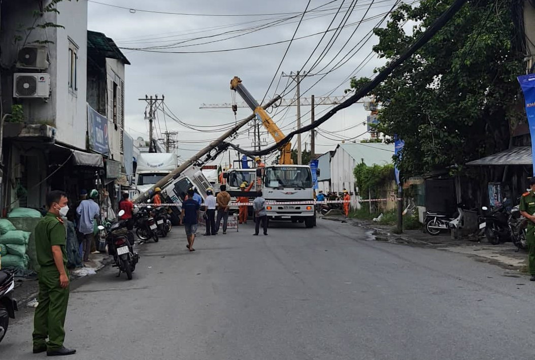 Cụ thể, một xe container chạy trên đường Lưu Trọng Lư đã va quẹt vào dây thông tin băng ngang đường làm 1 trụ điện bê tông ly tâm 12m đang đỡ lưới điện và hệ thống cáp viễn thông đổ.