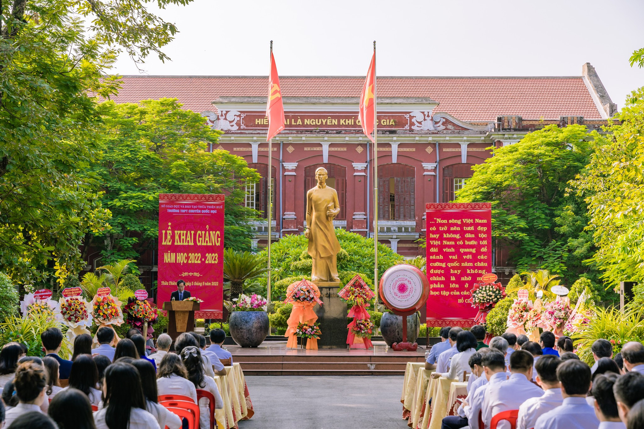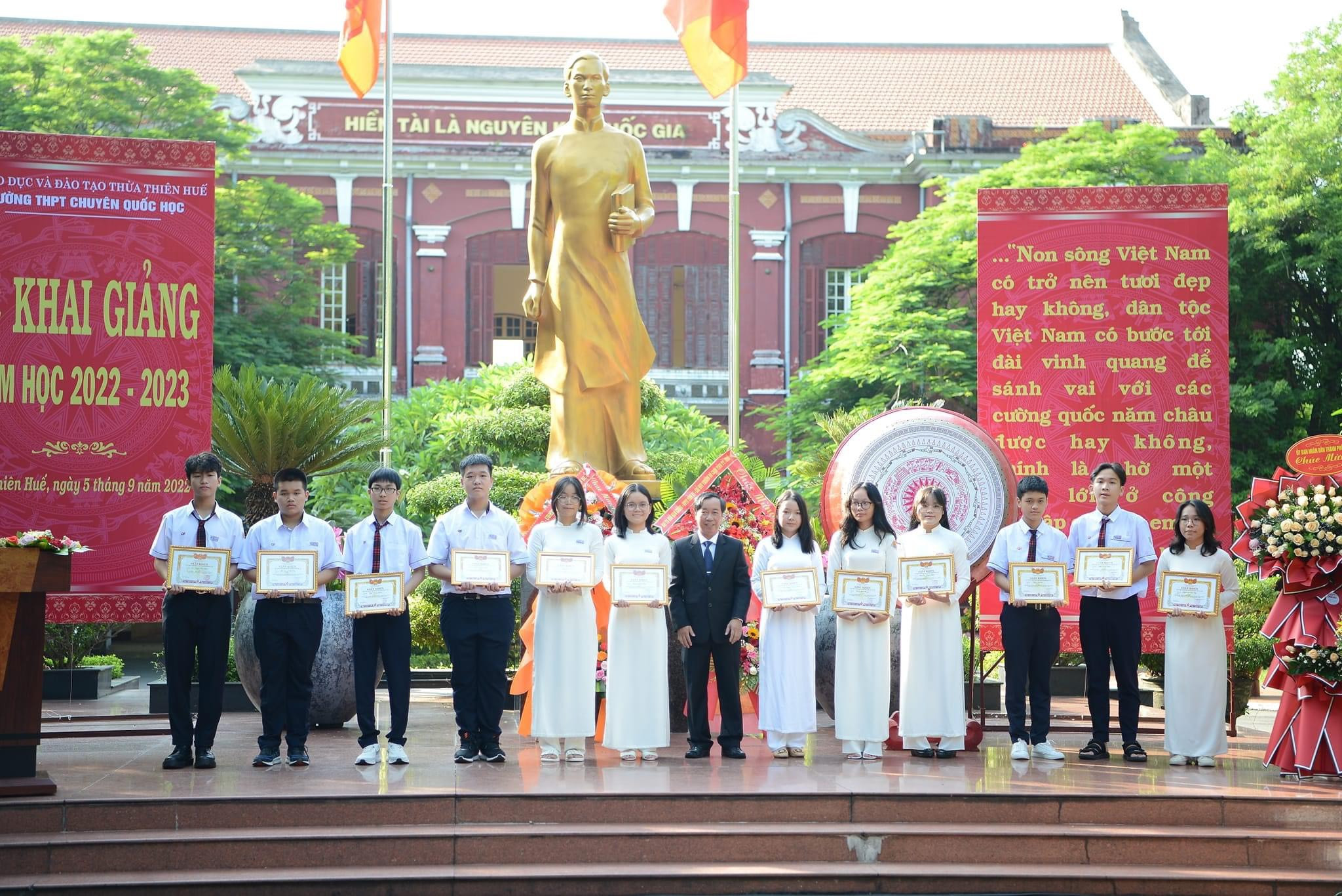 Với niềm tin tưởng đó tôi xin tuyên bố Khai giảng năm học 2022-2023 của Trường THPT chuyên Quốc Học - Huế.