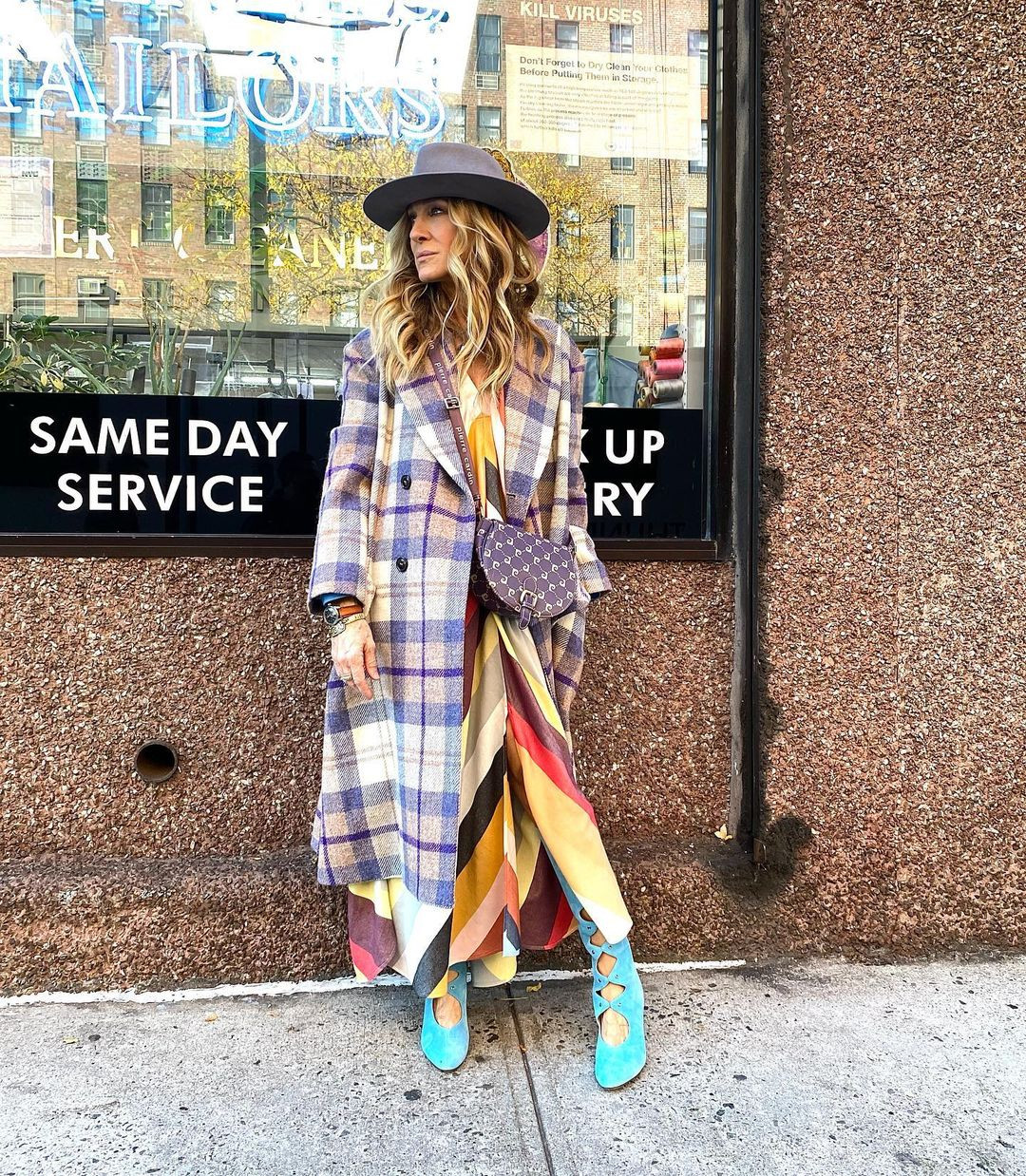 Đầm trễ vai có màu sắc rực rỡ không làm khó được nữ diễn viên 58 tuổi. Trang phục kết hợp với găng tay hồng tím khiến cô càng nổi bật.Sarah Jessica Parker chọn váy cúp ngực khoe vai thon, đội mũ, làm tóc theo phong cách quý tộc khi dự sự kiện.Tạp chí Vogue từng nhận xét phong cách thời trang của Sarah Jessica Parker dường như không bao giờ lỗi thời.Dù yêu thích những trang phục sắc màu nhưng nữ diễn viên vẫn hút ánh nhìn khi kết hợp váy áo có màu sắc trung tính, giản dị với giày và túi màu nổi.Đôi boots tím khiến set đồ trắng của Sarah Jessica Parker bắt mắt hơn bao giờ hết.Dù mặc giản dị, Sarah Jessica Parker vẫn không quên phối đồ để luôn cá tính.