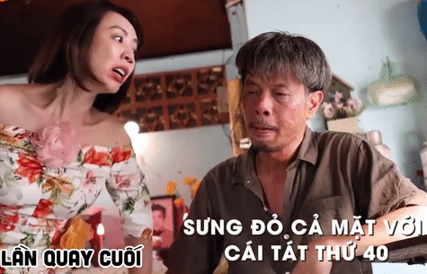 Trong đoạn clip, sau khi diễn cảnh tranh cãi và tát 'con gái' Thu Trang, dù kịch bản không yêu cầu, Thái Hòa đã tự tát vào mặt mình rất mạnh trong sự ngỡ ngàng của Thu Trang và chính đạo diễn Vũ Ngọc Đãng. Khi ê kíp chưa hiểu chuyện gì xảy ra thì Thái Hòa tiếp tục nhập vai và tát liên tiếp vào mặt mình tới lần thứ 40 khiến mặt anh sưng đỏ.