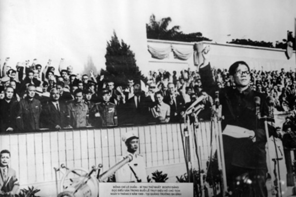 | Tổng bí thư Lê Duẩn đọc điếu văn tại lễ truy điệu Chủ tịch Hồ Chí Minh ngày 9/9/1969. Ảnh tư liệu |