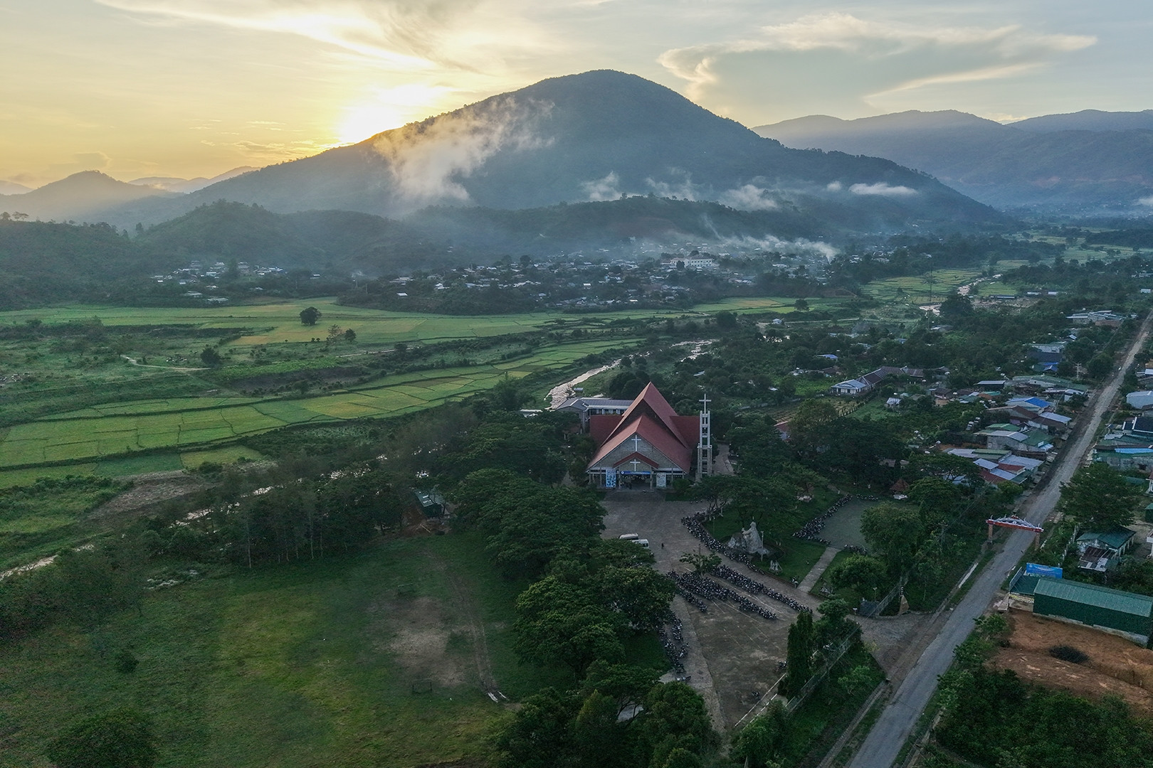 Thôn 5, xã Rô Men từng là vùng đất khô khốc, đồi dốc và bụi đỏ. Nhưng hôm nay, giữa màu xanh của rẫy cà phê, xen lẫn sắc trắng hoa sầu riêng đầu mùa, thôn hiện lên như một ốc đảo bình yên, nơi người Mông đã chọn dừng chân, cắm rễ và hồi sinh sau hành trình di cư tự do đầy cơ cực.