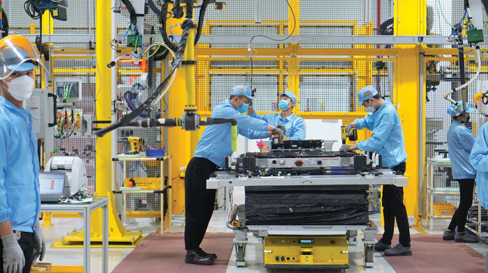 Công đoạn lắp ráp cuối cùng khối pin xe điện VFe34 tại Nhà máy pin VinFast