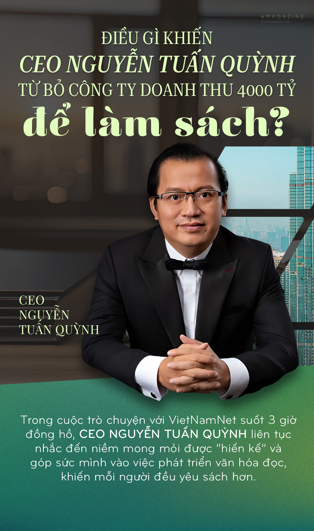 Tôi bắt đầu khởi nghiệp với sách vào năm 2016, khi 44 tuổi. Và lúc đó có 3 người anh em thân thiết can ngăn tôi. Người thứ nhất phân tích rằng thị trường sách Việt Nam lúc bấy giờ có quy mô 2.000 tỷ đồng nếu tôi giỏi lắm chiếm được 10% thị phần tương đương 200 tỷ - chẳng thấm vào đâu khi so với công ty có doanh thu 4.000 tỷ mà tôi đang quản lý. Anh khuyên tôi bỏ khởi nghiệp sách, kiếm việc khác mà làm.