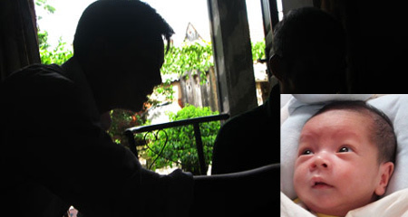 Đến ngày 25/10/2013, chị H. sinh được bé trai tại nhà nghỉ. Sợ gia đình biết chuyện, chị H. và anh T. đã mang con đến chùa Bồ Đề, gặp sư trụ trì Đàm Lan, nói dối cháu bé là con người khác, không có điều kiện nuôi con, muốn nương nhờ cửa chùa.