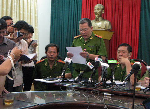 | Cơ quan điều tra công bố thông tin tại buổi họp báo chiều 5/8. |