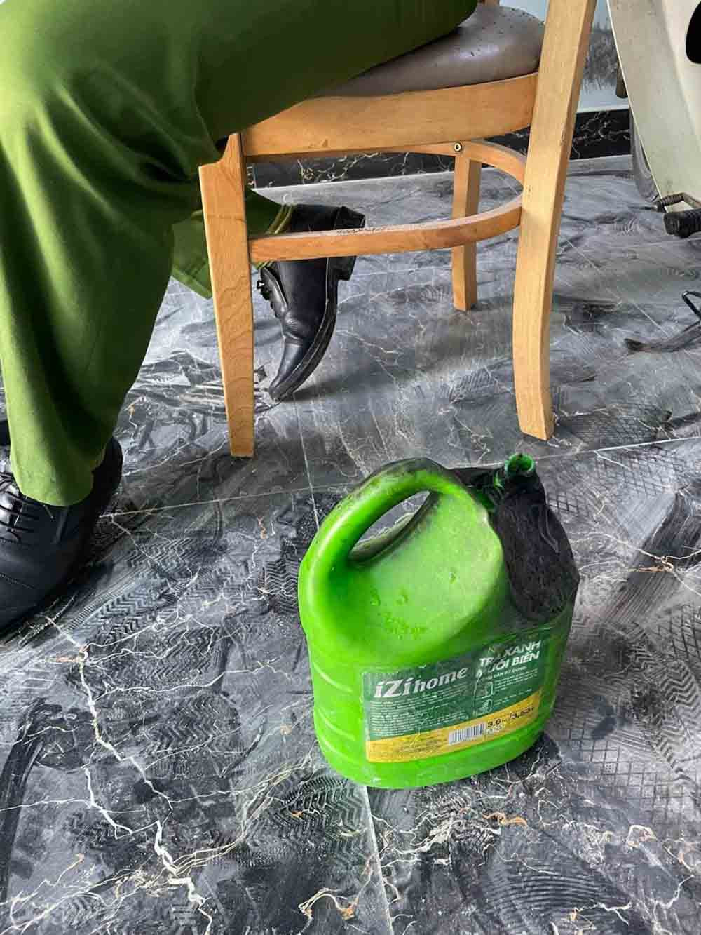 Theo đó, khoảng 13h chiều 3/5, một thanh niên đi xe gắn máy đến trước quán. Nam thanh niên này mặc quần Jean lửng, áo khoác trắng, đội nón lưỡi trai màu trắng và mang theo một can xăng chừng 3 lít.