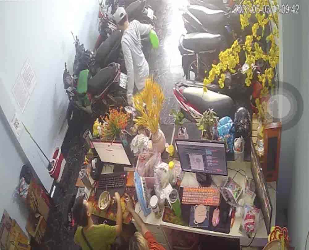 Vừa gây án xong, nam thanh niên chạy ra ngoài lên xe gắn máy tẩu thoát. Chủ quán, là chị T, có chạy theo níu kéo, truy hỏi nhưng thanh niên trên rồ ga bỏ đi.